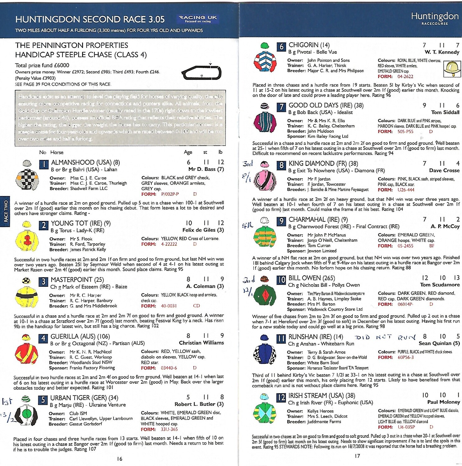 2008 Huntingdon August Bank Holiday Monday Race Meeting (25/08/2008) Horse Racing Racecard
