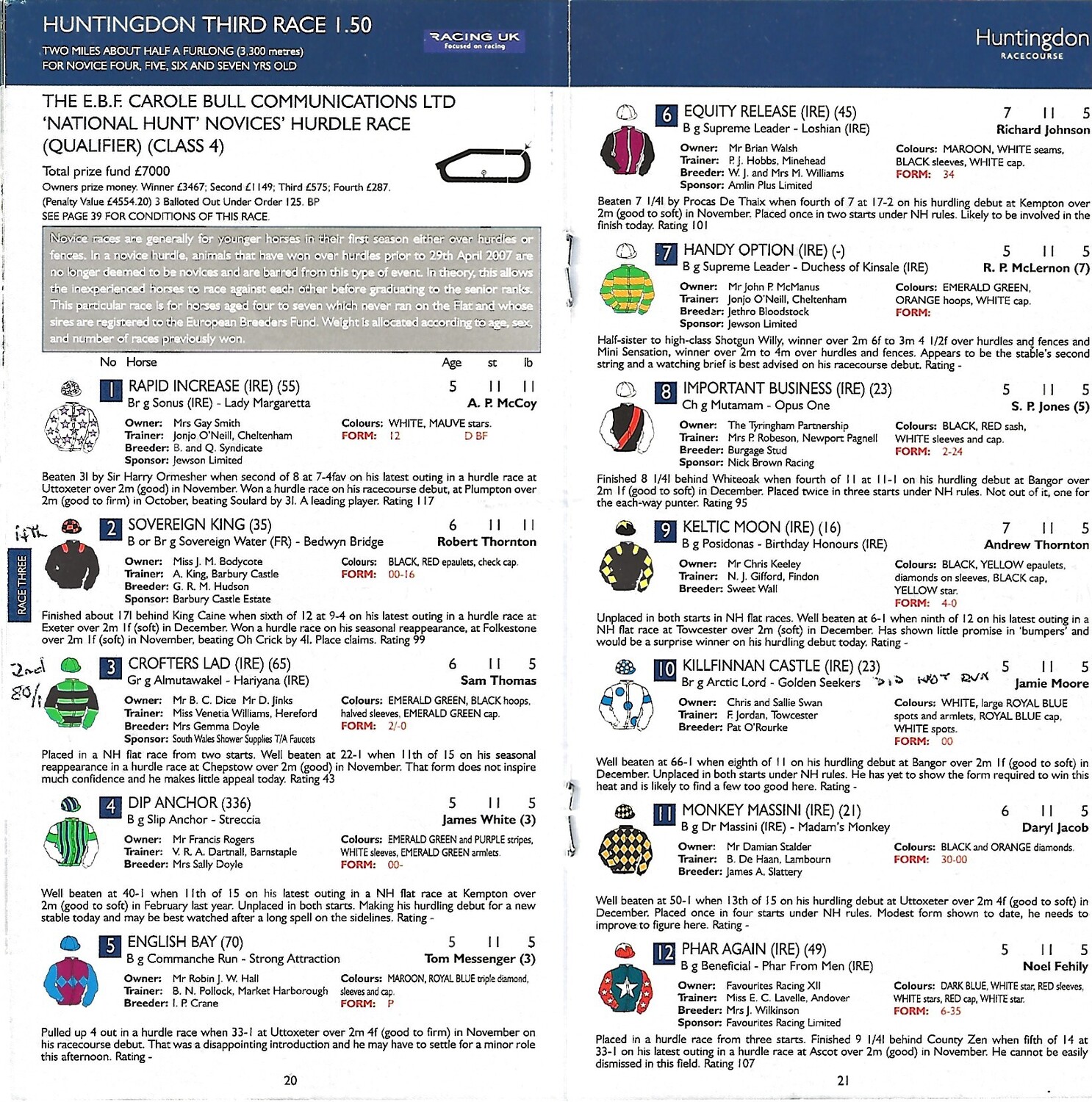 2008 Huntingdon First January Race Meeting (11/01/2008) Horse Racing Racecard