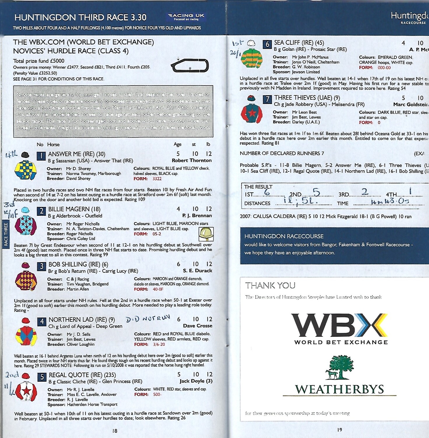 2008 Huntingdon Second October Race Meeting (14/10/2008) Horse Racing Racecard