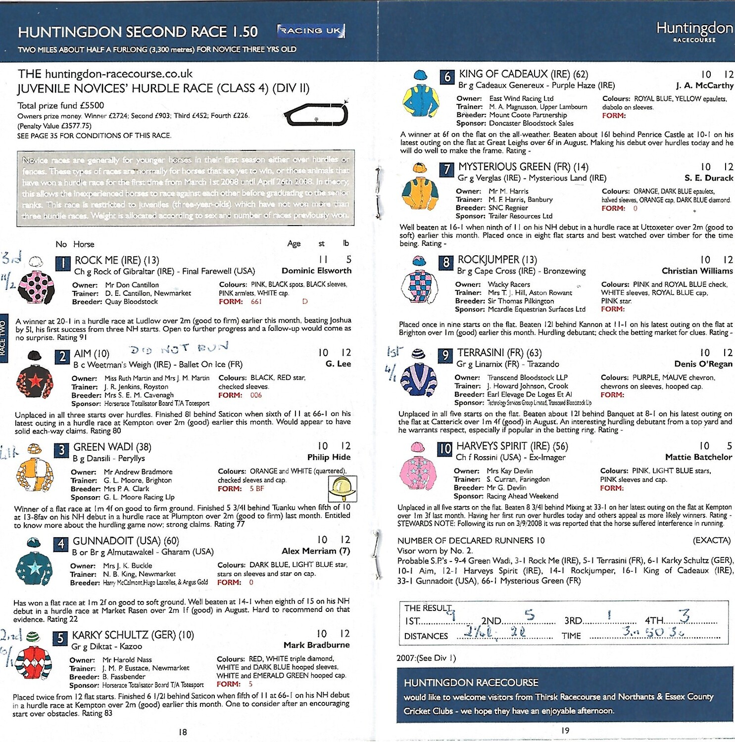 2008 Huntingdon Third October Race Meeting (29/10/2008) Horse Racing Racecard