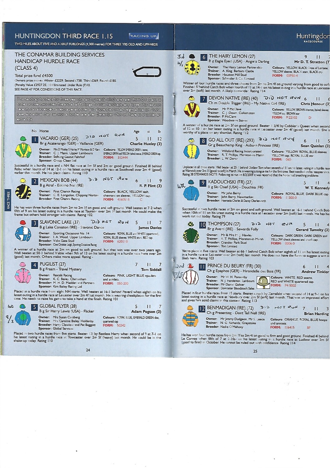 2009 Huntingdon Boxing Day Race Meeting 26/12/2009) Horse Racing Racecard