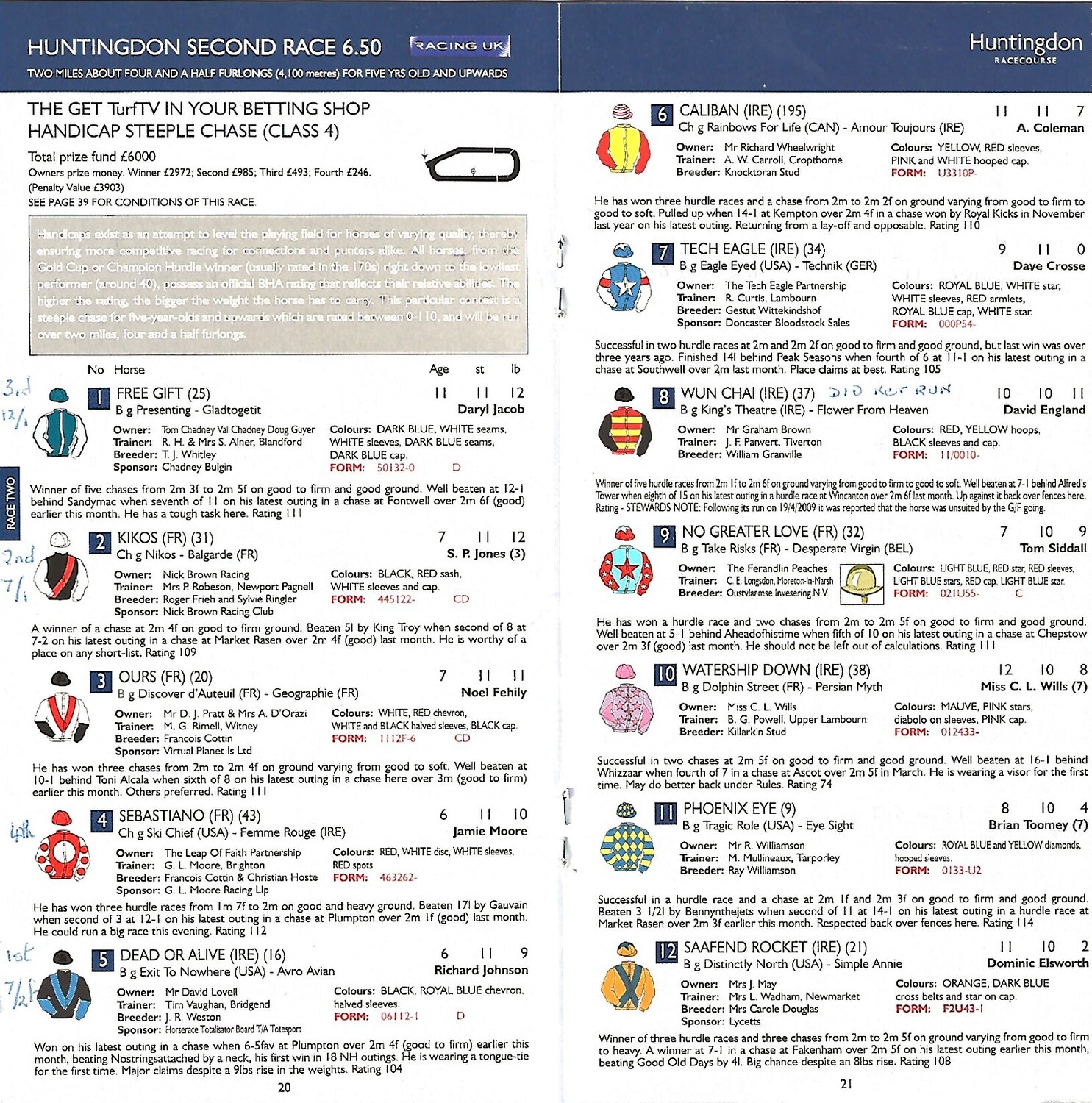 Slight creasing, annotation in ink on runners/riders pages. (as per photo).