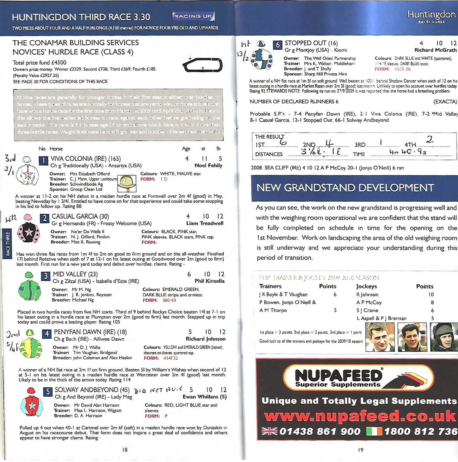 2009 Huntingdon Second October Race Meeting (13/10/2009) Horse Racing Racecard