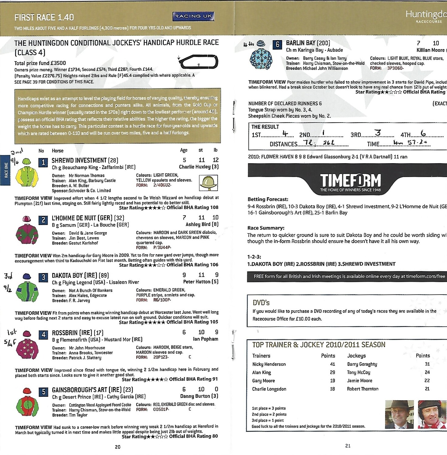 2011 Huntingdon Easter Monday Family Fun Day Race Meeting (25/04/2011) Horse Racing Racecard