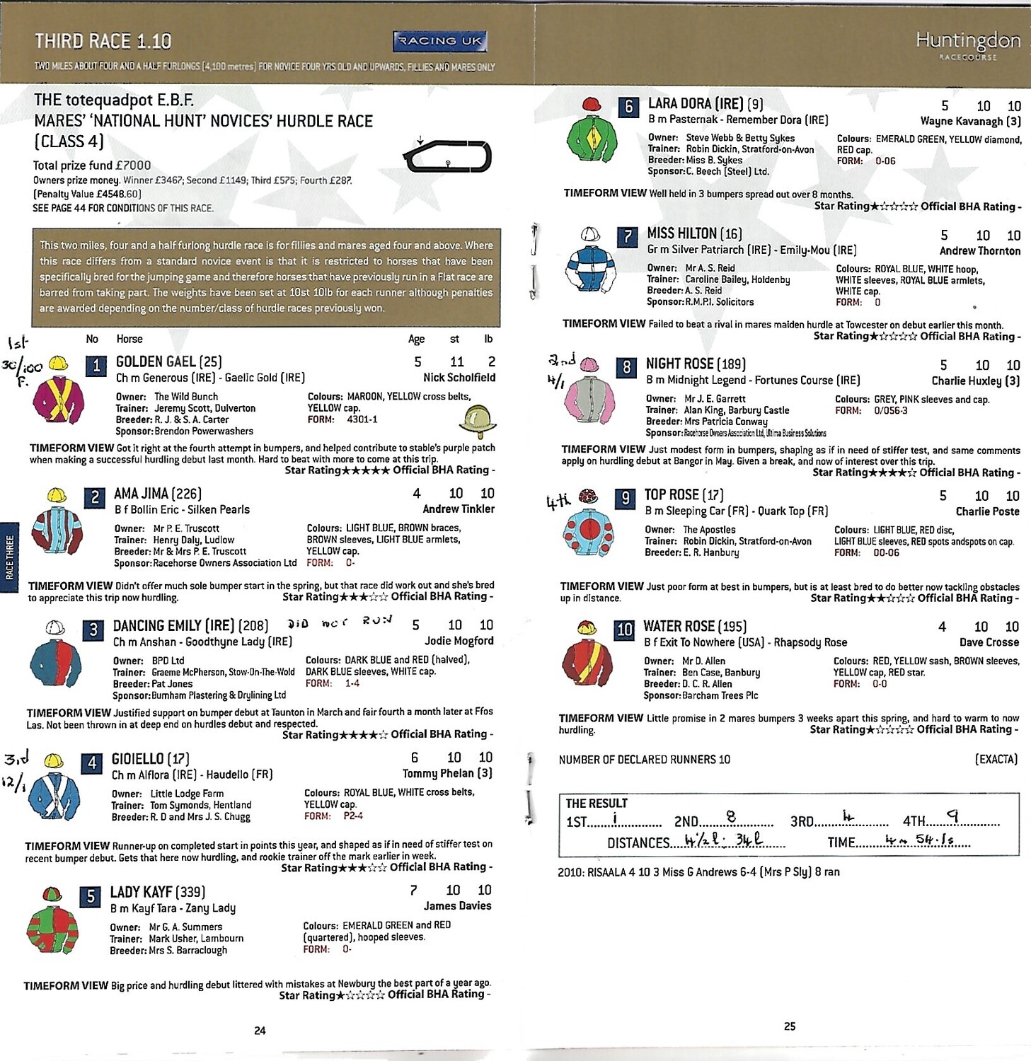 2011 Huntingdon Totepool Day Race Meeting (19/11/2011) Horse Racing Racecard