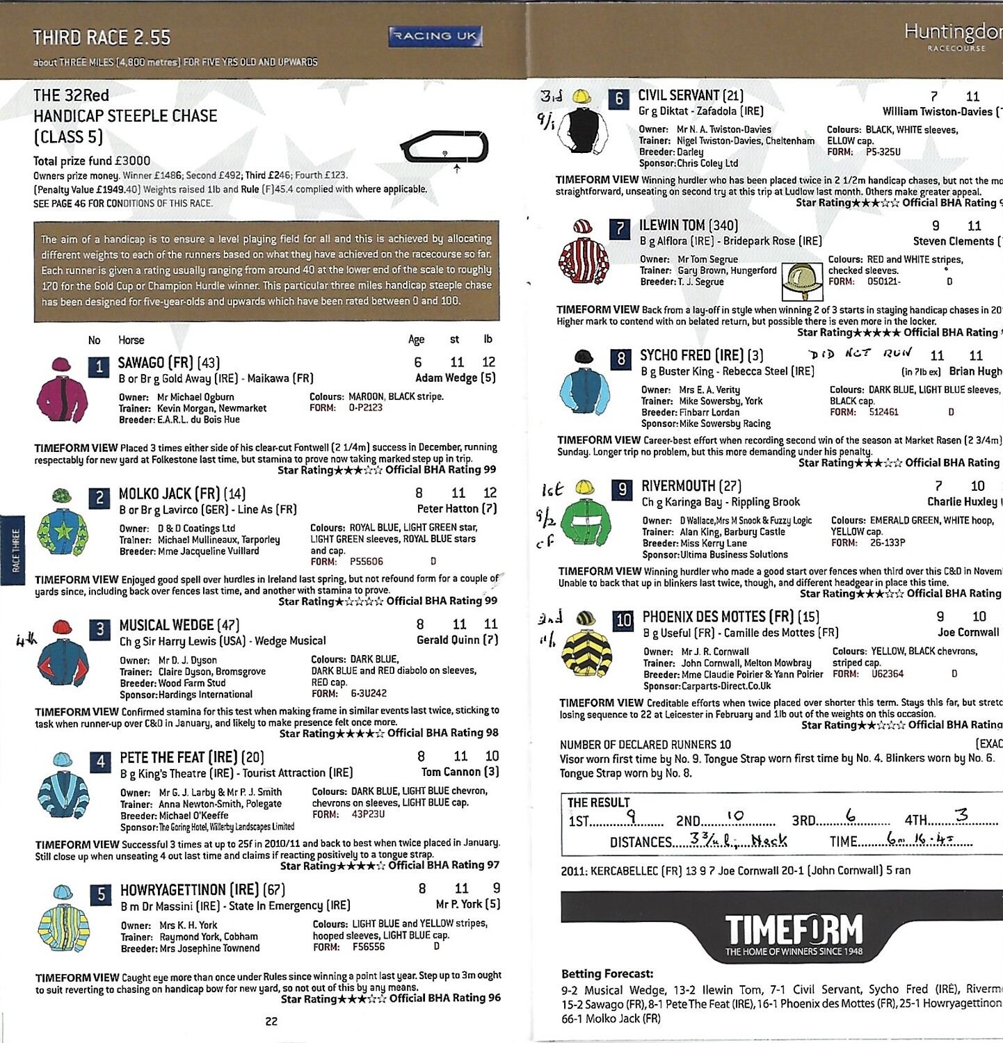 2012 Huntingdon March Race Meeting (14/03/2012) Horse Racing Racecard