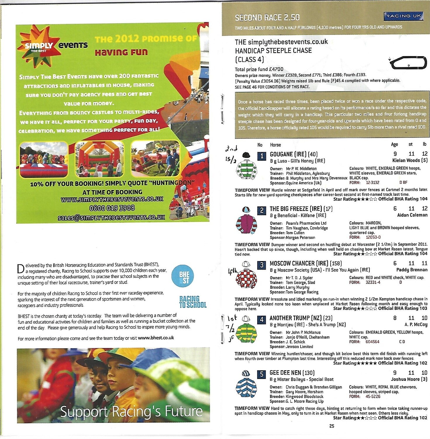 2012 Huntingdon Second October Race Meeting (16/10/2012) Horse Racing Racecard