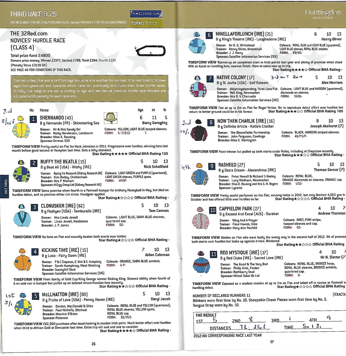 2013 Huntingdon April Race Meeting (28/04/2013) Horse Racing Racecard
