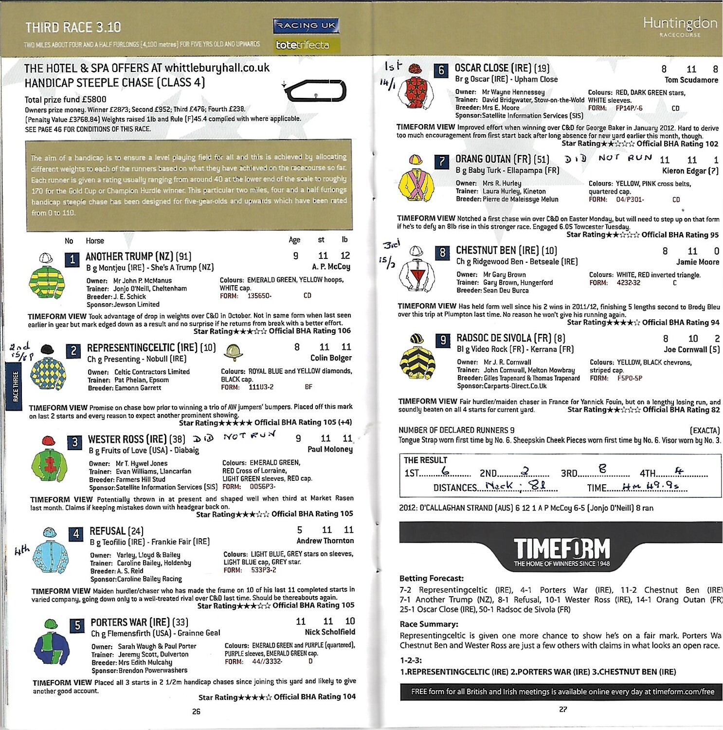2013 Huntingdon May Ladies Night Race Meeting (22/05/2013) Horse Racing Racecard