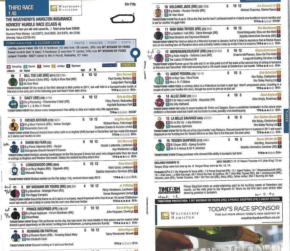 2013 Huntingdon Second November Race Meeting (12/11/2013) Horse Racing Racecard