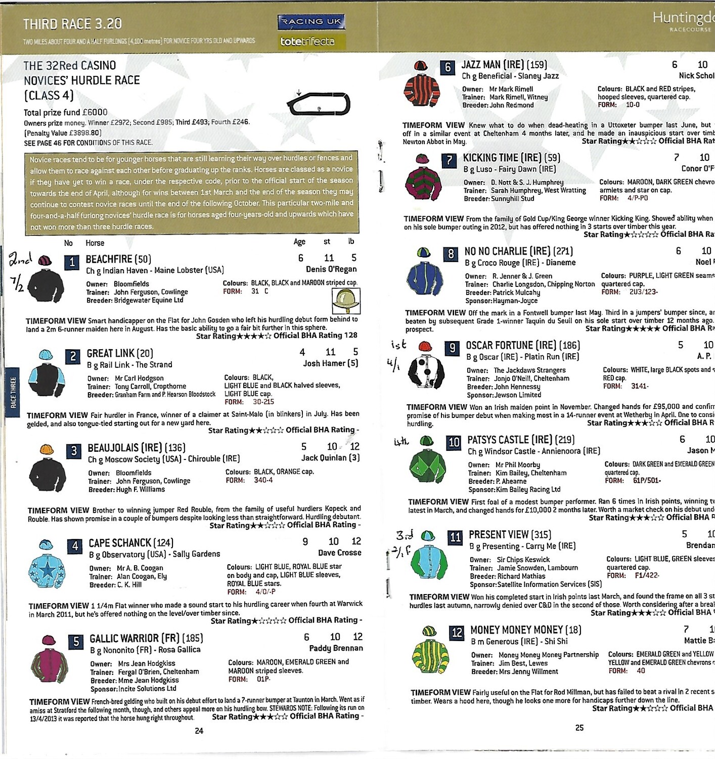 2013 Huntingdon Second October Race Meeting (15/10/2013) Horse Racing Racecard