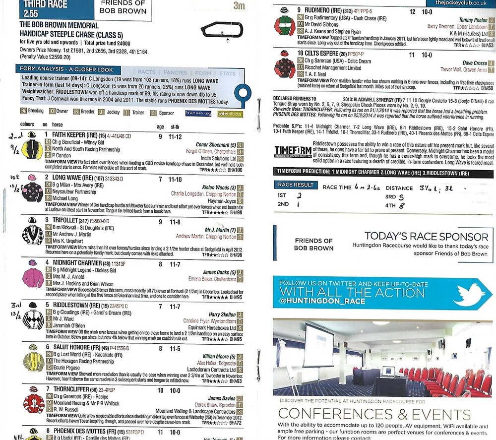 2014 Huntingdon Cheltenham Closer To Home Race Meeting (12/03/2014) Horse Racing Racecard