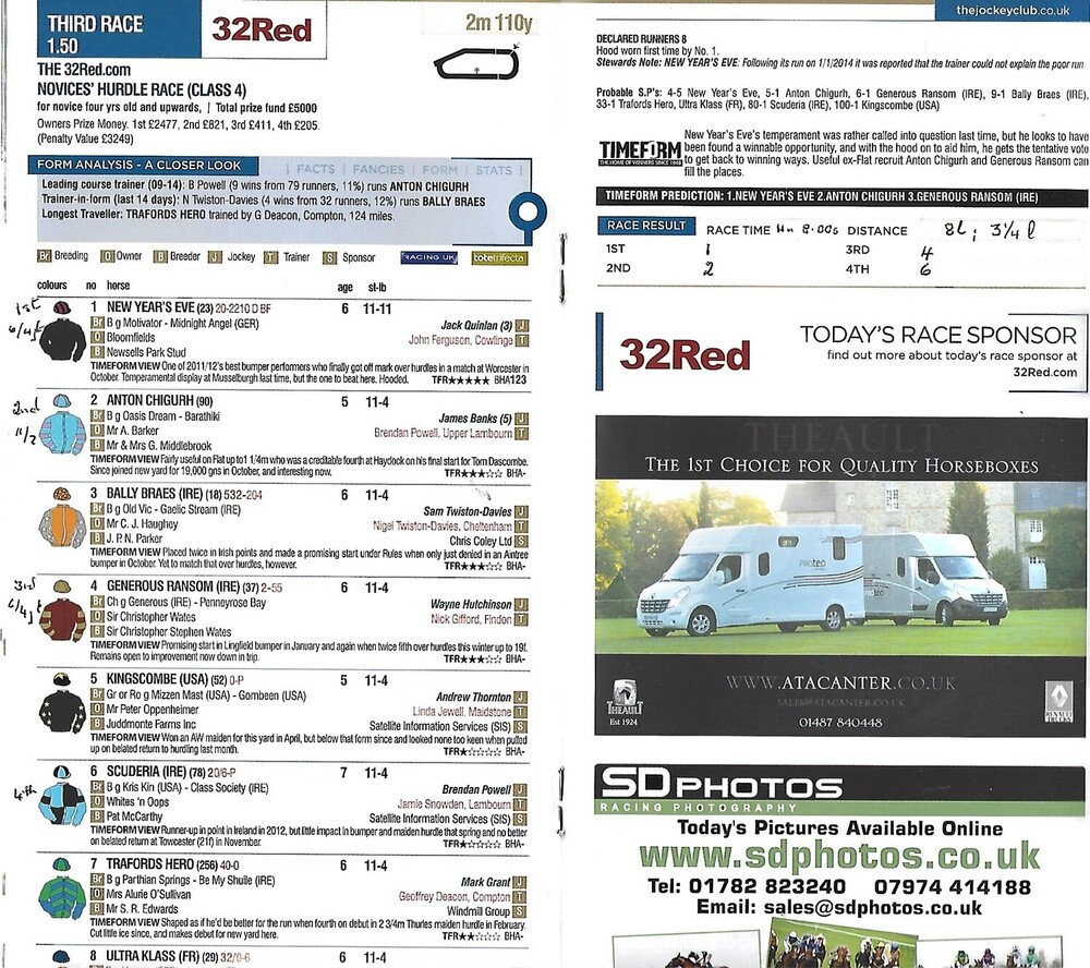 2014 Huntingdon Third January Race Meeting (24/01/2014) Horse Racing Racecard