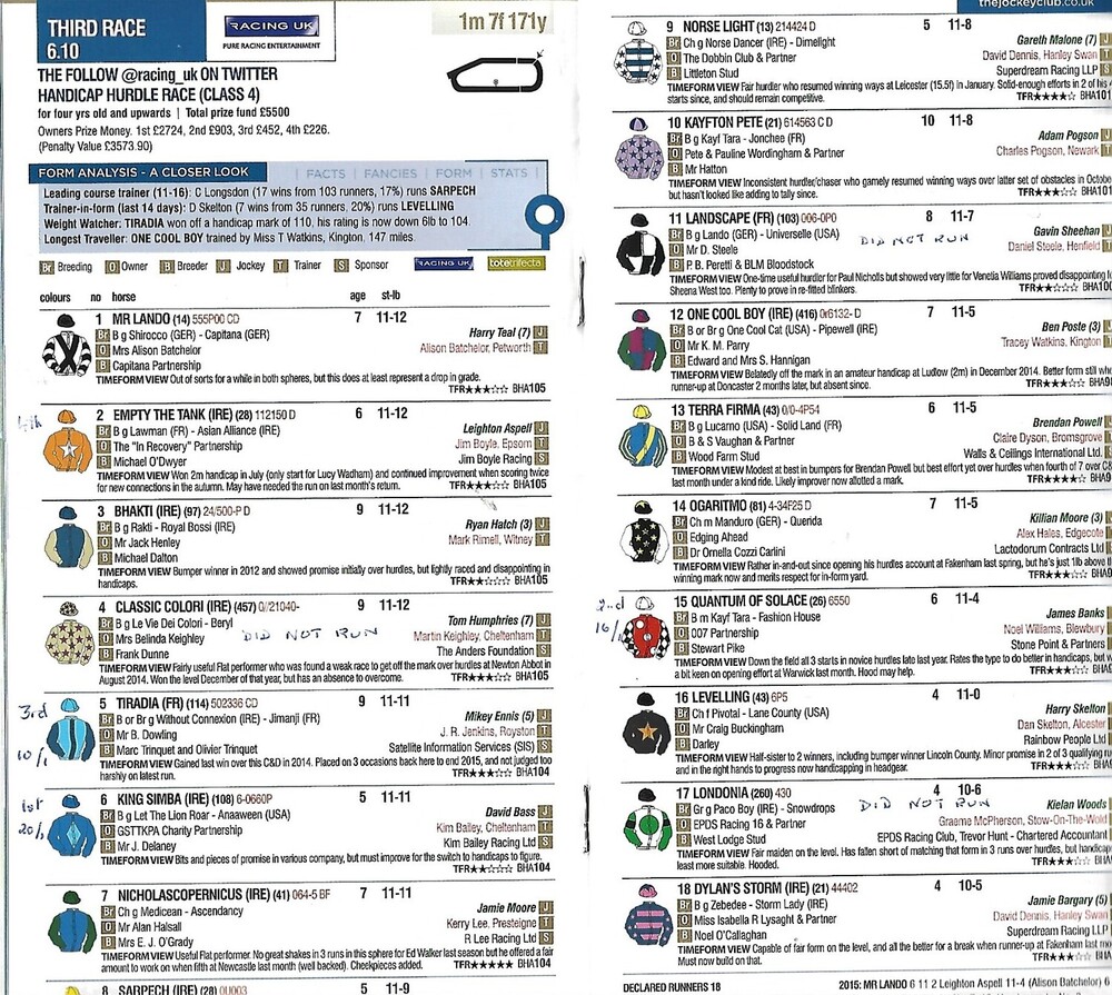 2016 Huntingdon Racing UK Day (18/04/2016) Horse Racing Racecard