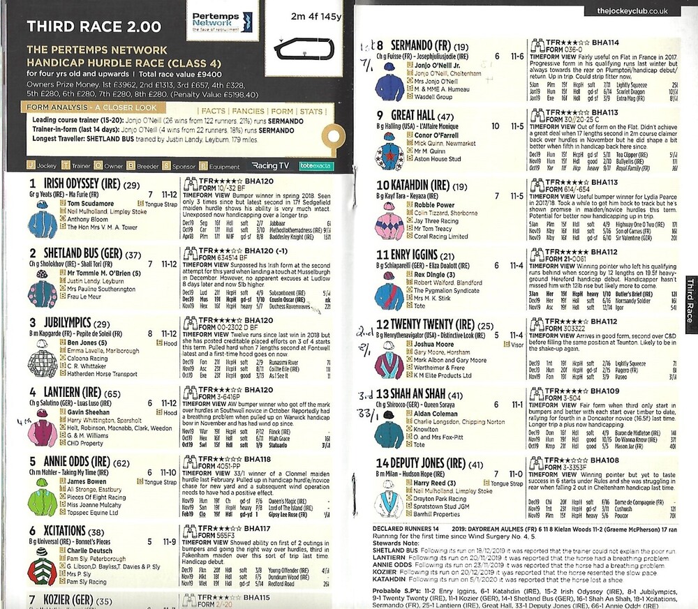 2020 Huntingdon The Pertemps Raceday Race Meeting (24/01/2020) Horse Racing Racecard