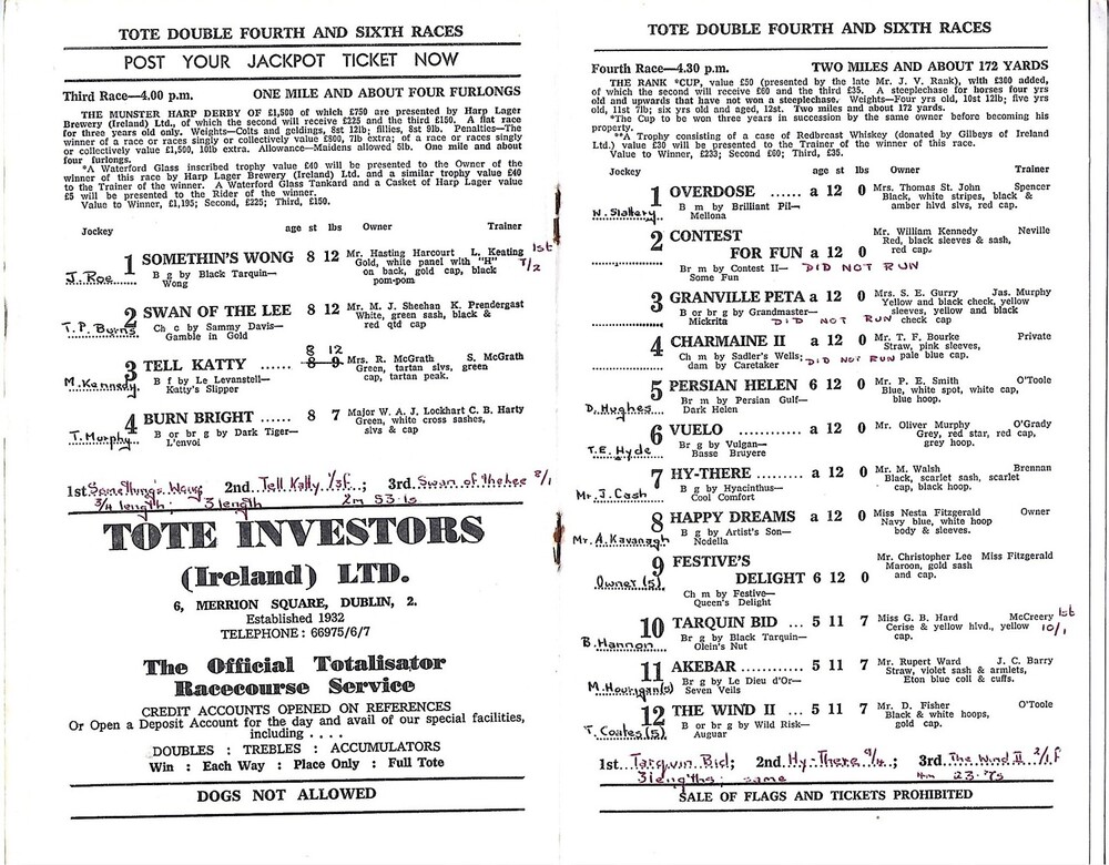 1969 Killarney Munster Harp Derby Meeting (16/07/1969) Horse Racing Racecard