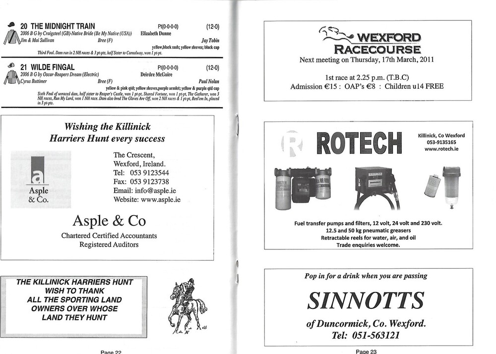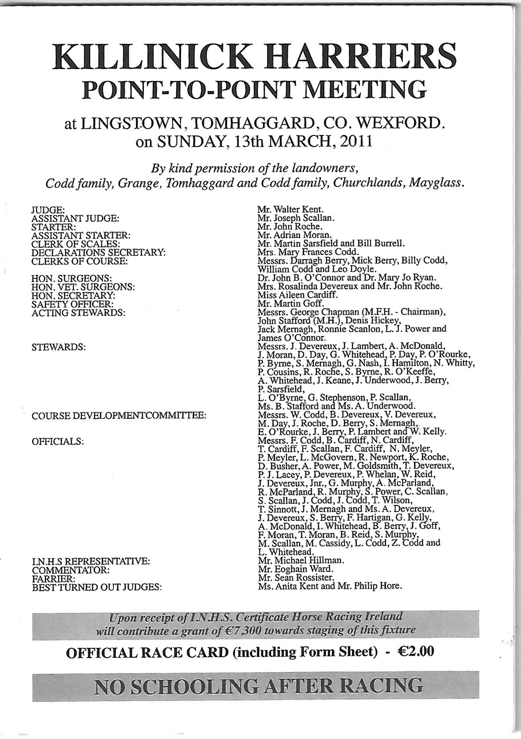 2011 Lingstown Killinick Harriers Point To Point Meeting (13/03/2011) Horse Racing Racecard