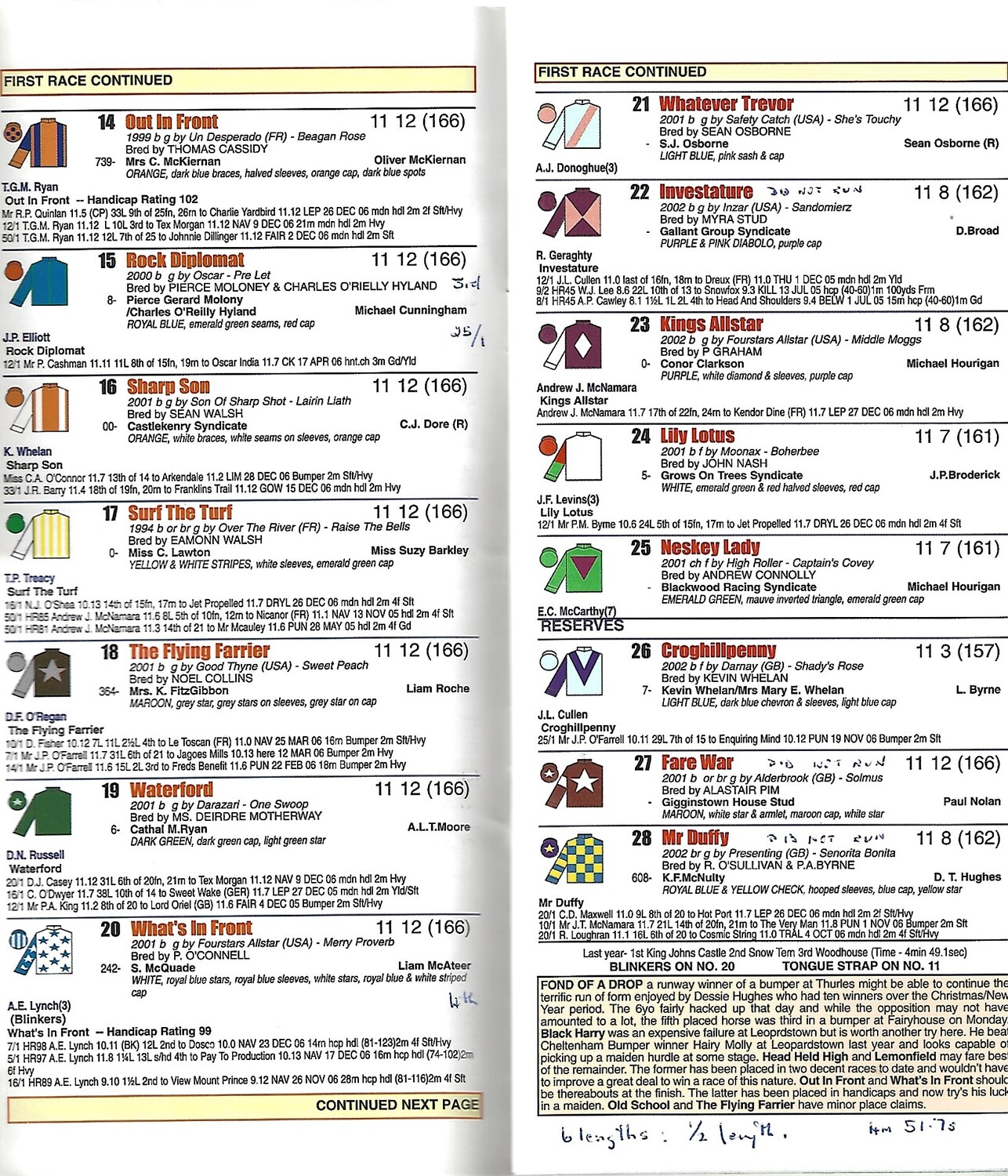 2007 Naas Race Meeting (07/01/2007) Horse Racing Racecard
