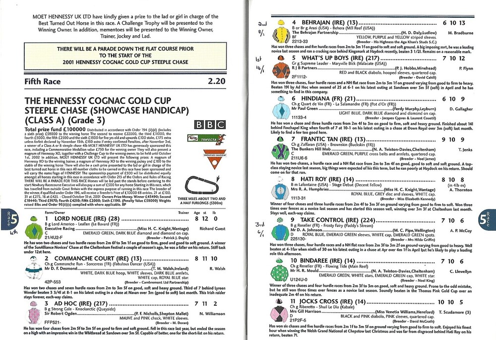 2001 Newbury Hennessey Gold Cup Meeting (01/12/2001) Horse Racing Racecard
