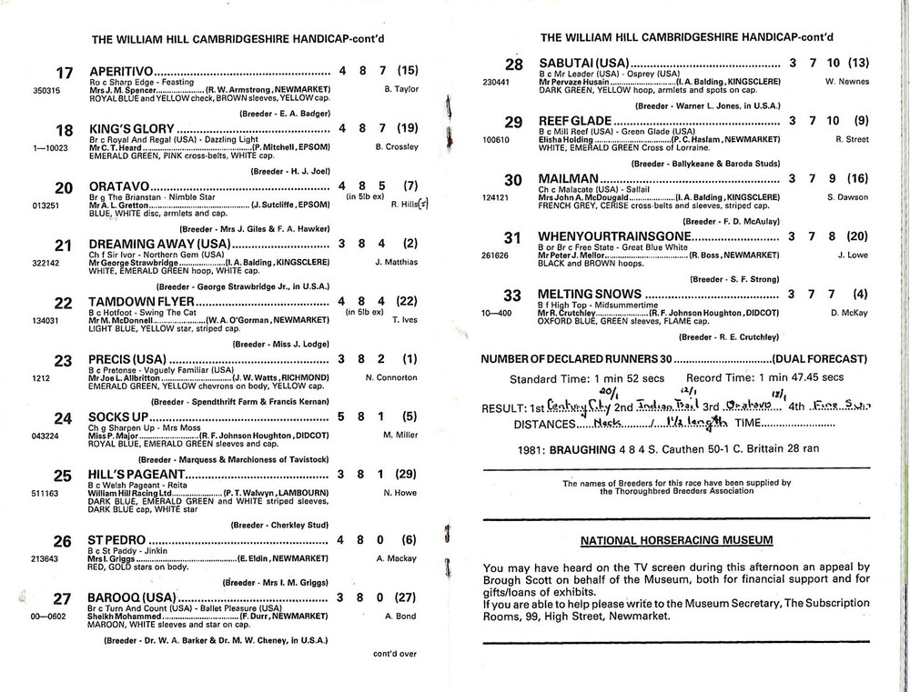 1982 Newmarket October (William Hill Cambridgeshire Handicap) Race Meeting (02/10/1982) Horse Racing Racecard