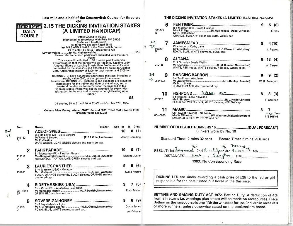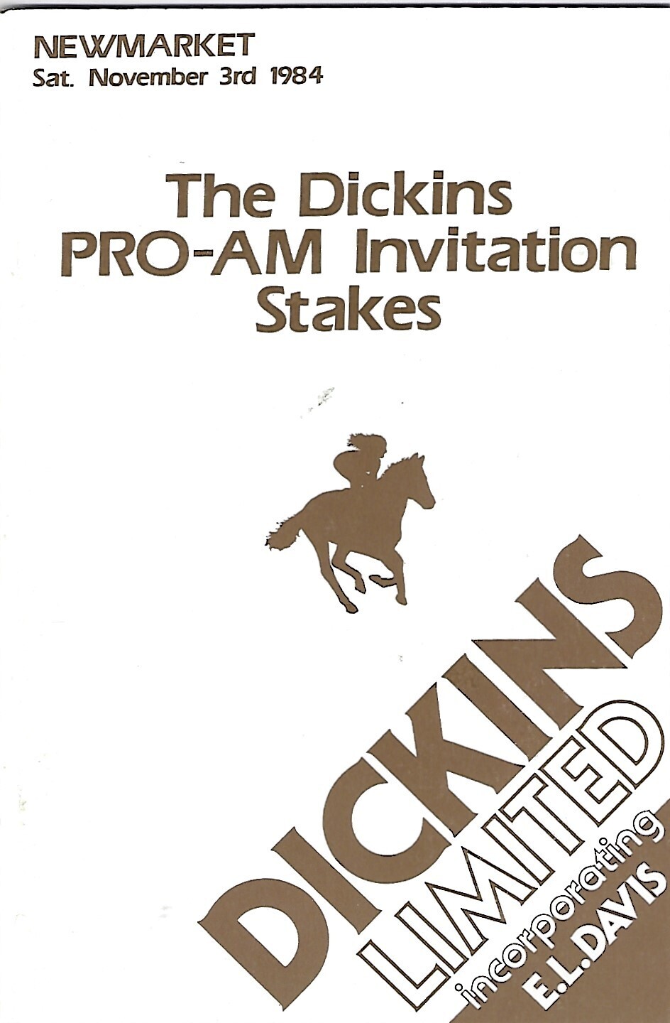1984 Newmarket November (The Dickins Pro-Am Invitation Stakes) Race Meeting (03/11/1984) Horse Racing Racecard