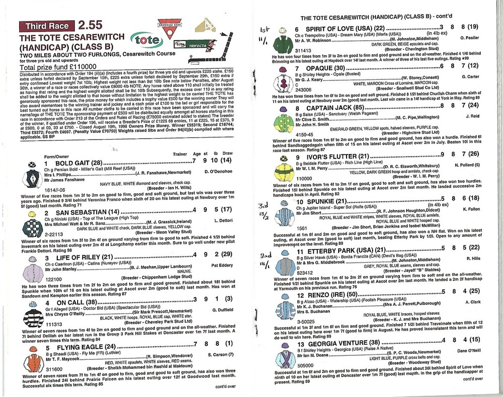 1998 Newmarket Houghton (Champions Day) Meeting (The Dubai Champion Stakes/Tote Cesarewitch) Race Meeting (17/10/1998) Horse Racing Racecard