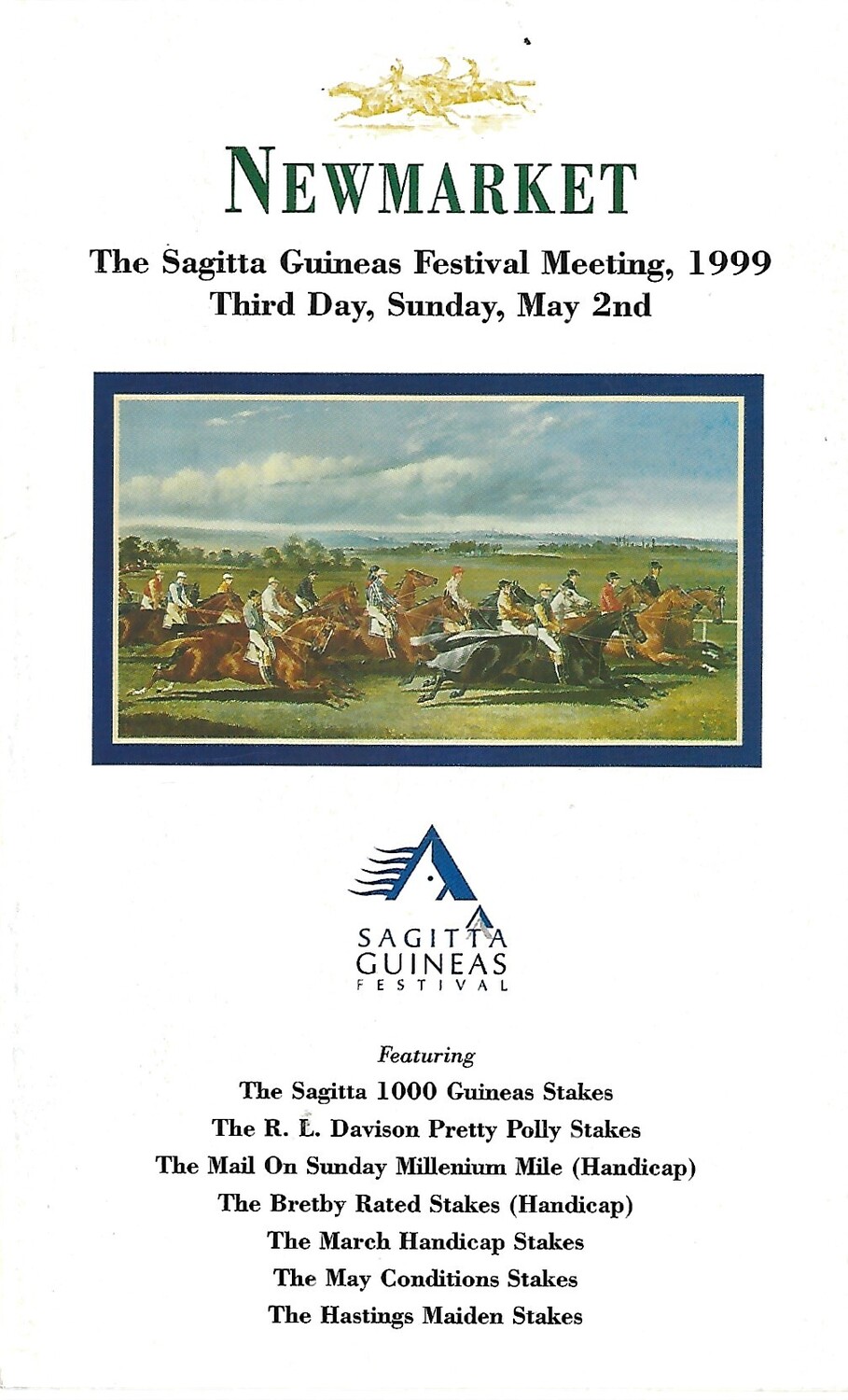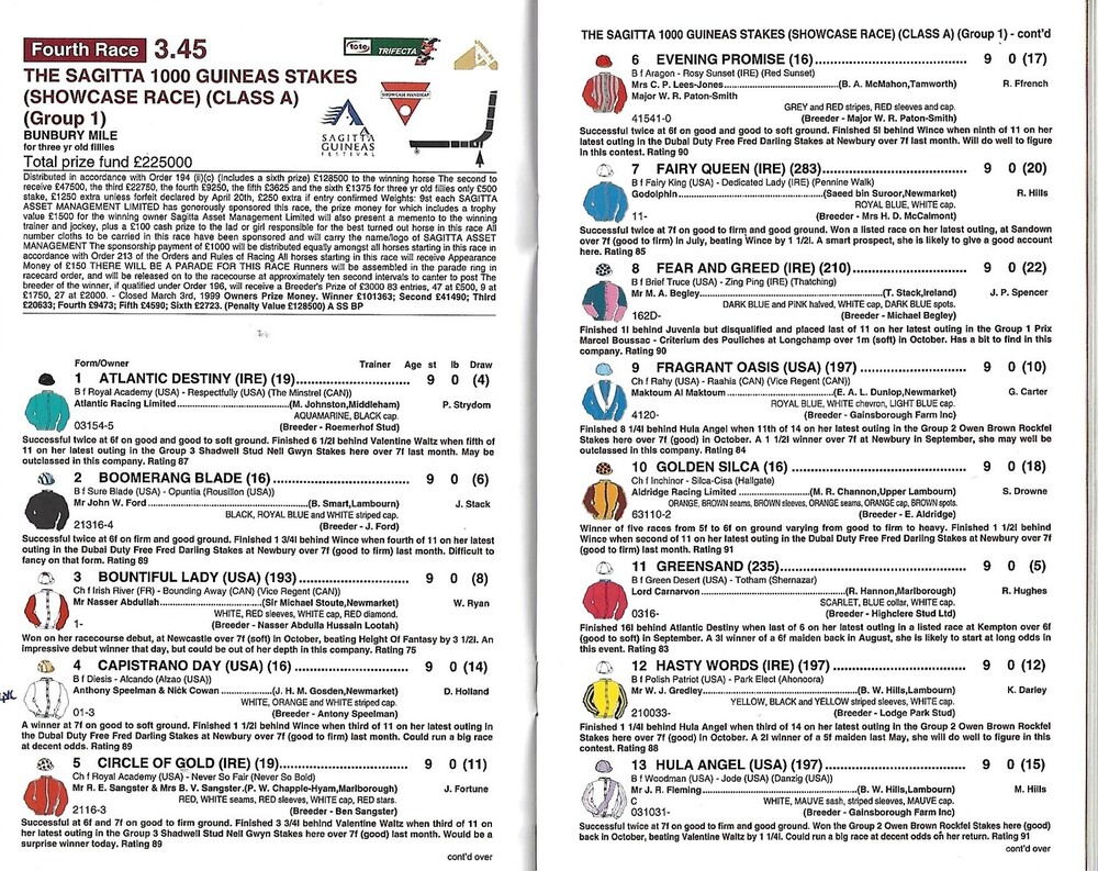 1999 Newmarket Sagitta Guineas Festival Meeting (The Sagitta 1,000 Guineas Stakes) Race Meeting (02/05/1999) Horse Racing Racecard