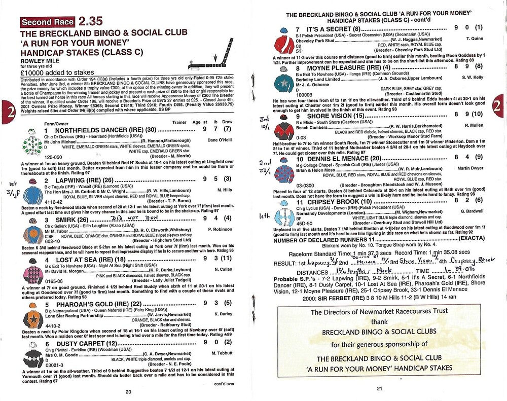 2001 Newmarket Second June Race Meeting (10/06/2001) Horse Racing Racecard