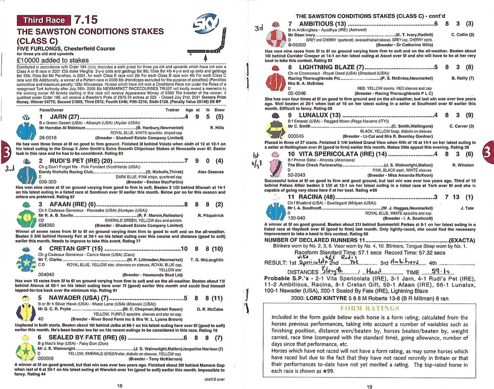 2001 Newmarket Third July Race Meeting (27/07/2001) Horse Racing Racecard