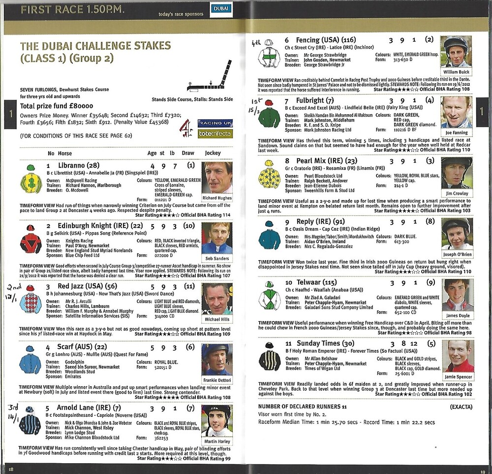 2012 Newmarket Future Champions Day Meeting (The Betfred Cesarewitch) Race Meeting (13/10/20212) Horse Racing Racecard