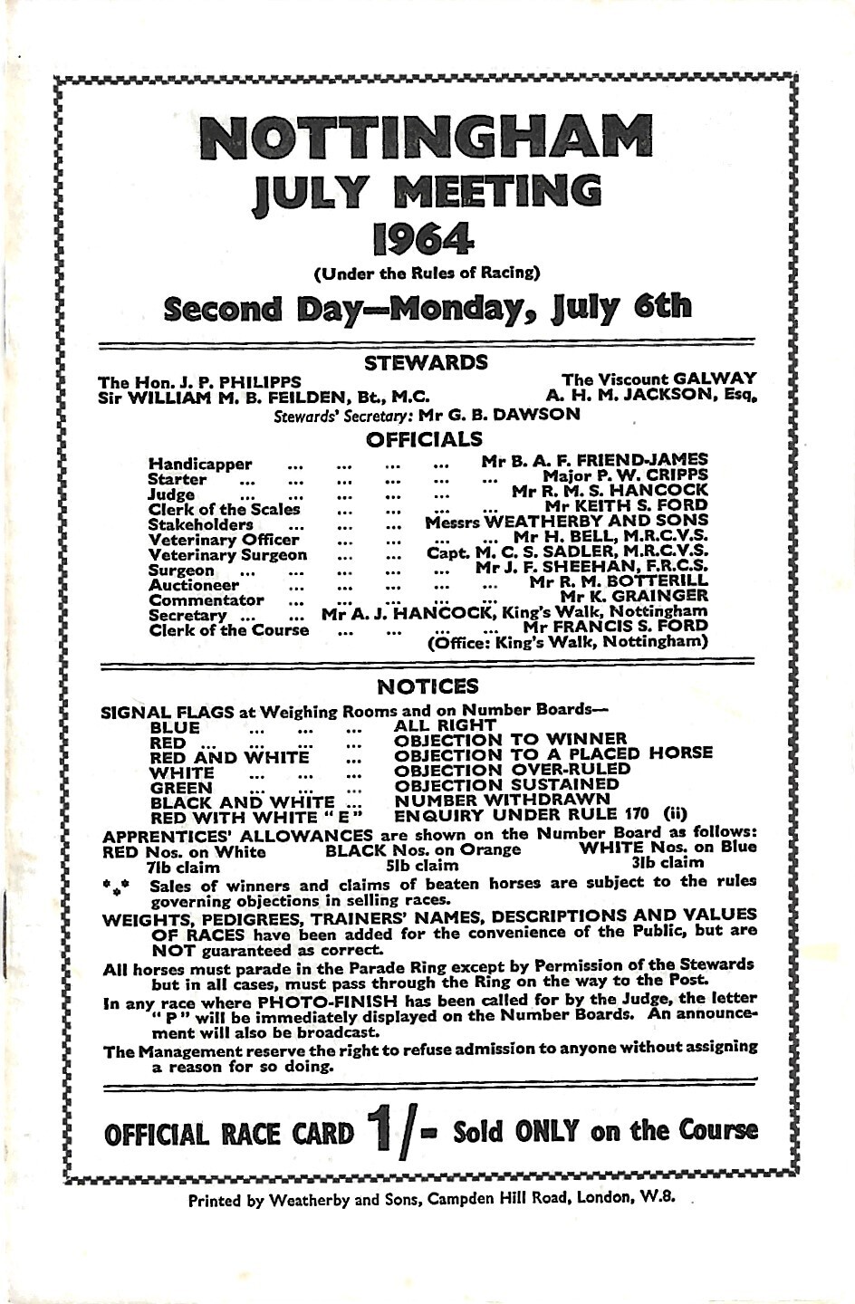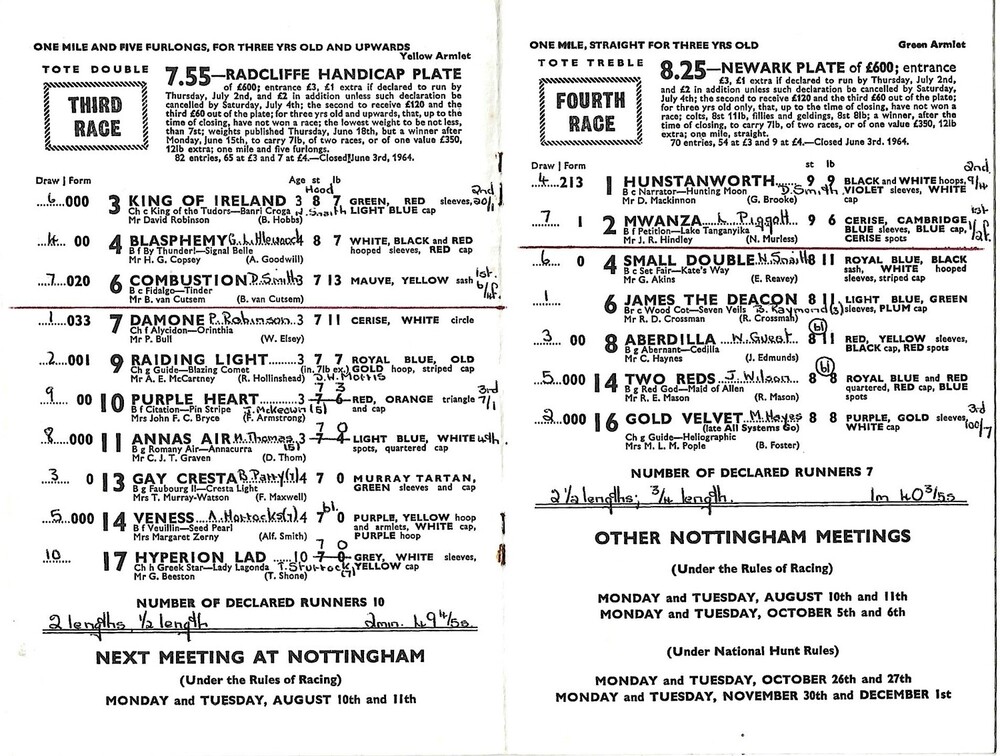1964 Nottingham July Meeting (06/07/1964) Horse Racing Racecard
