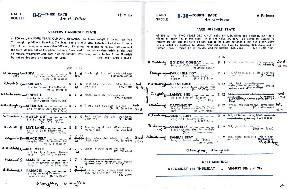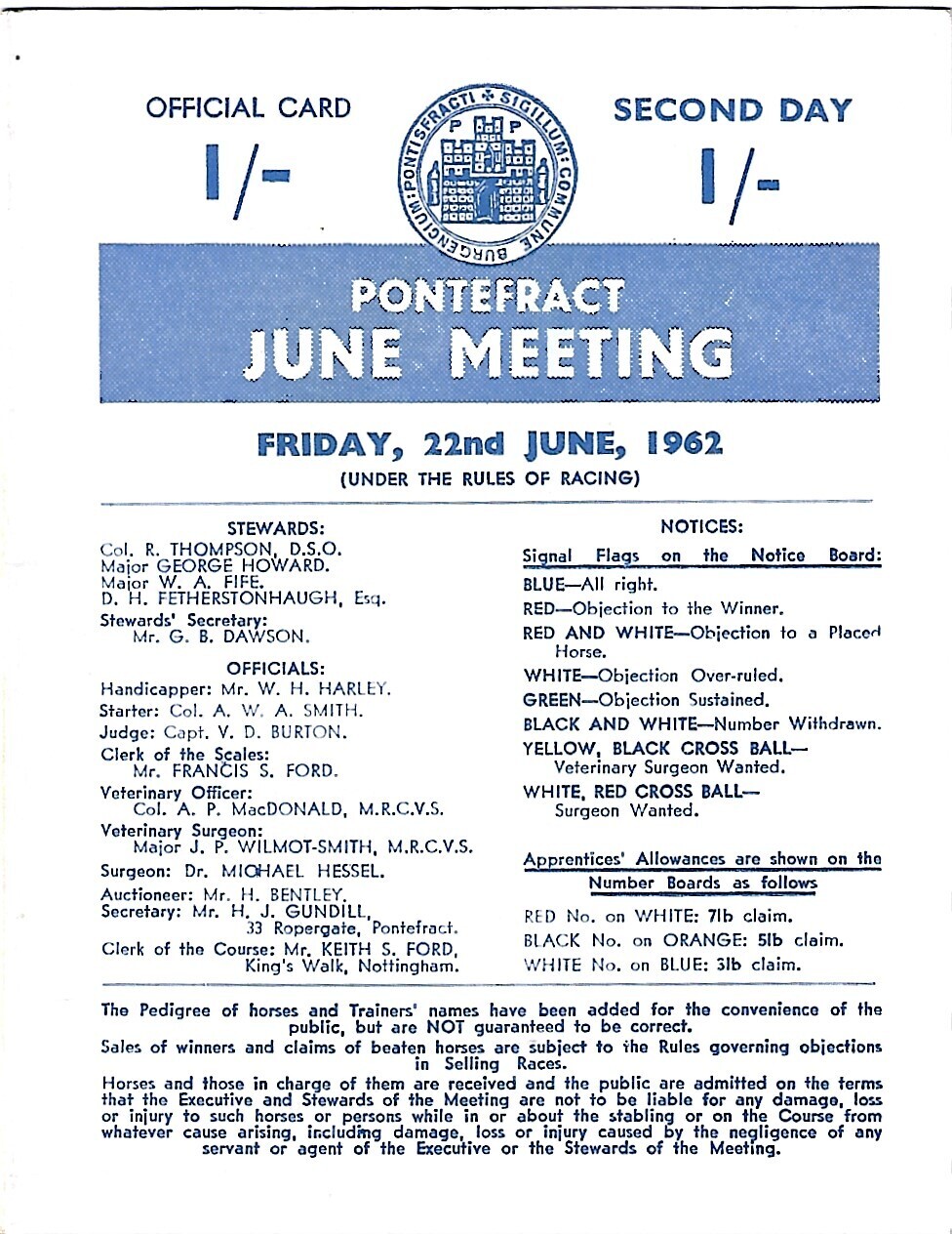 1962 Pontefract June Meeting (22/06/1962) Horse Racing Racecard