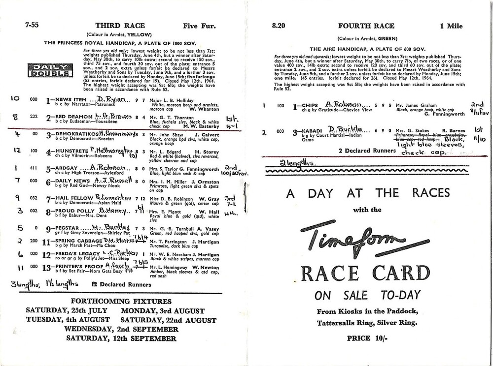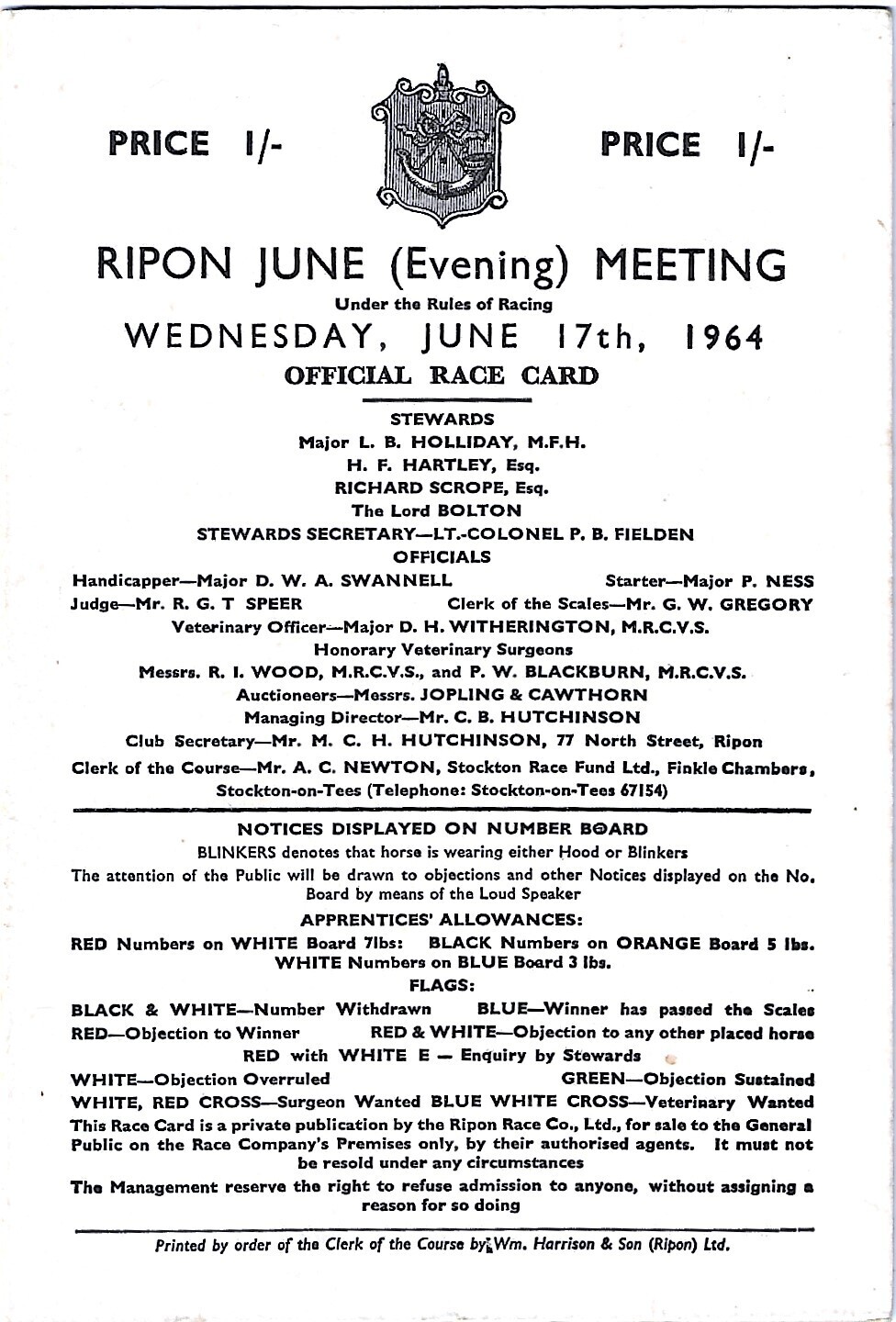 1964 Ripon June Evening Meeting (17/06/1964) Horse Racing Racecard