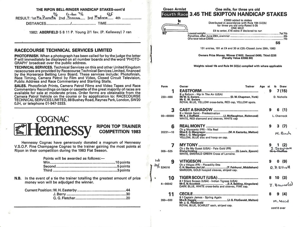 1983 Ripon July Meeting (16/07/1983) Horse Racing Racecard