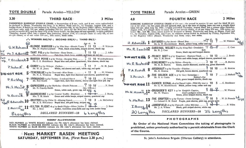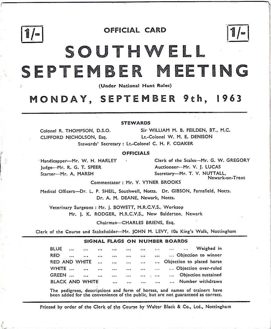 1963 Southwell September Meeting (09/09/1963) Horse Racing Racecard