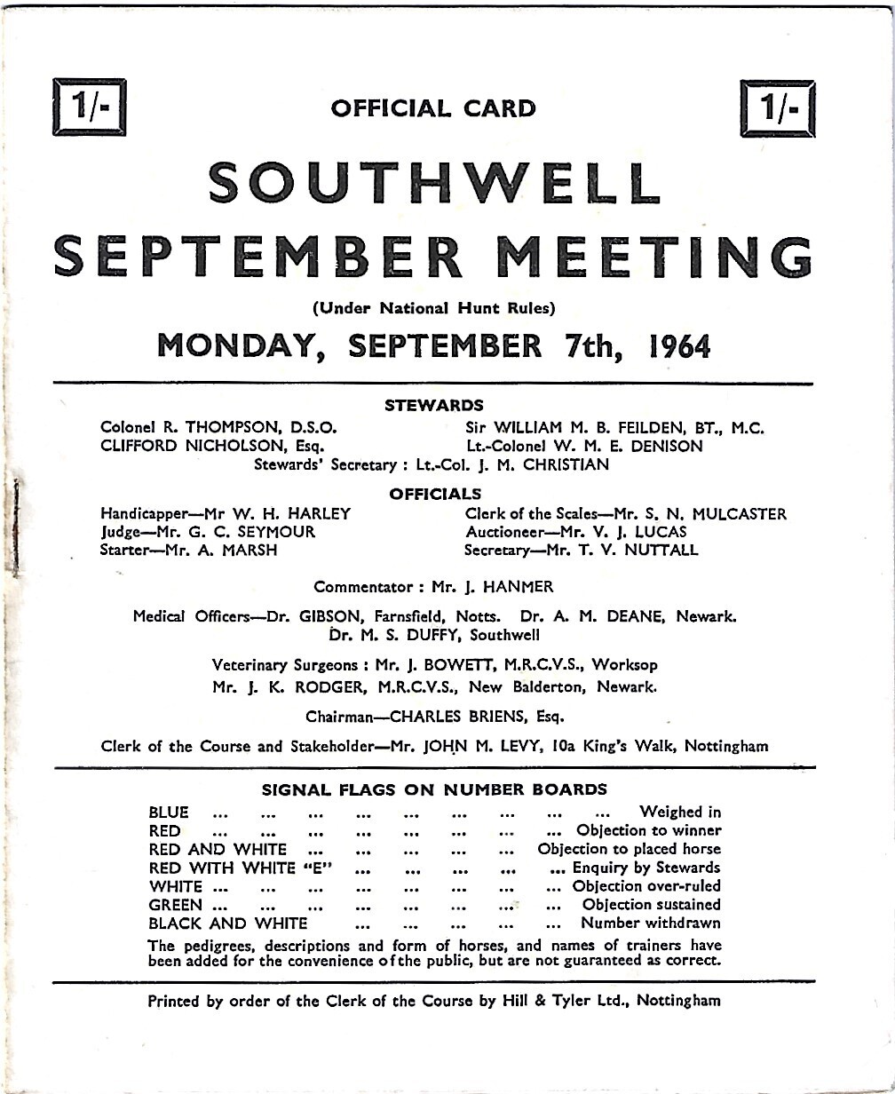 1964 Southwell September Meeting (07/09/1964) Horse Racing Racecard