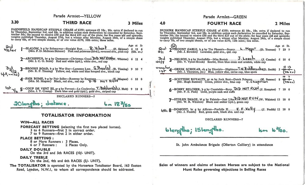 Slight creasing, discolouration, rusty staples, annotation in ink on runners/riders pages. (as per photo).