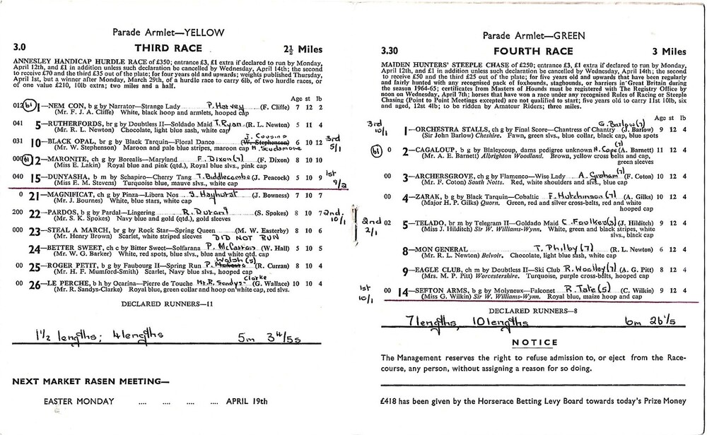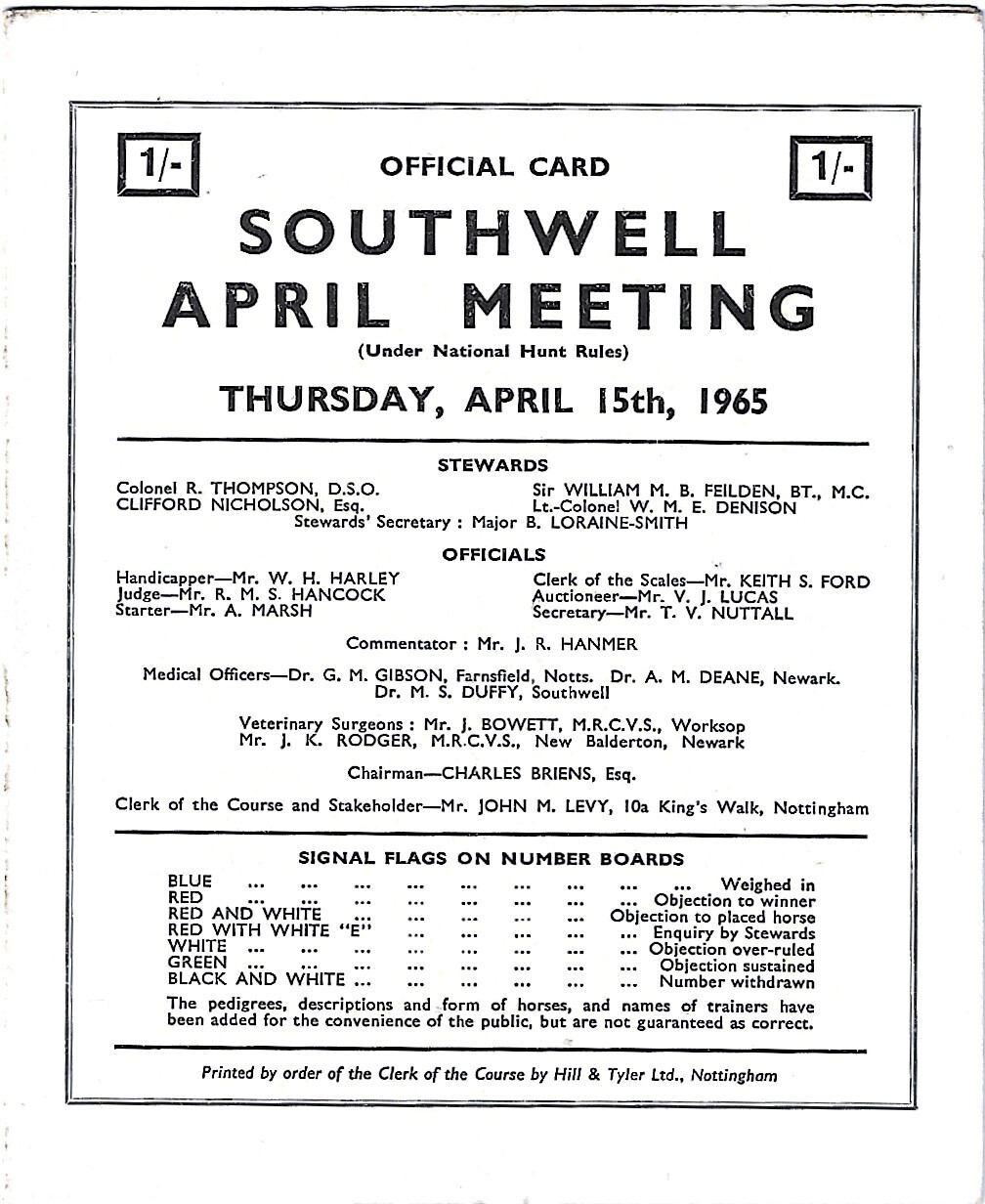 1965 Southwell April Meeting (15/04/1965) Horse Racing Racecard