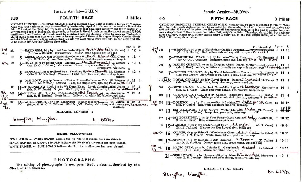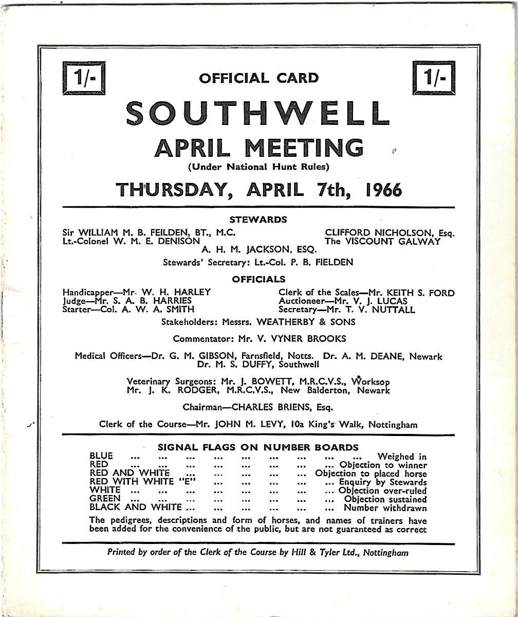 1966 Southwell April Meeting (07/04/1966) Horse Racing Racecard