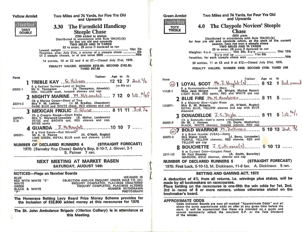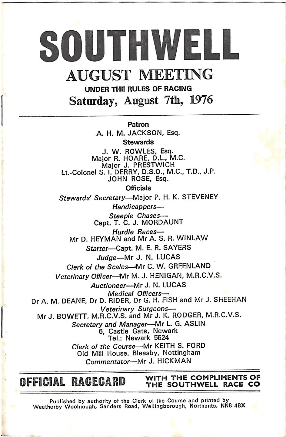 1976 Southwell August Meeting (07/08/1976) Horse Racing Racecard