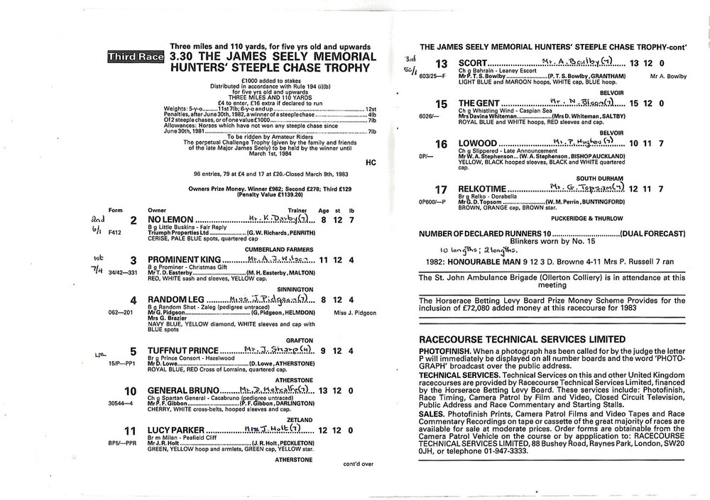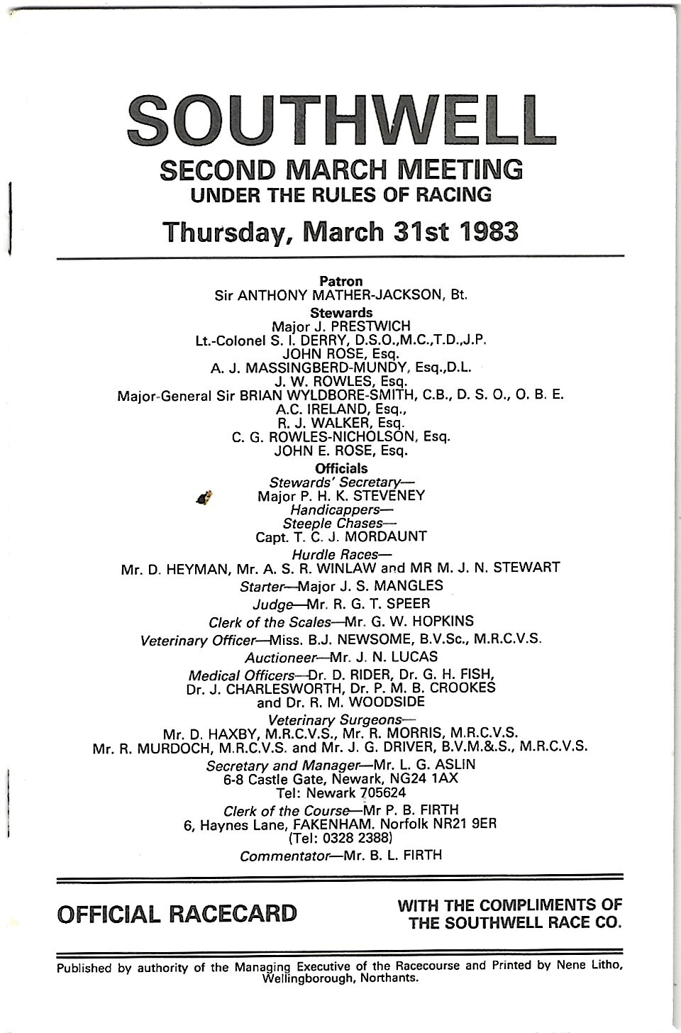 1983 Southwell Second March Meeting (31/03/1983) Horse Racing Racecard