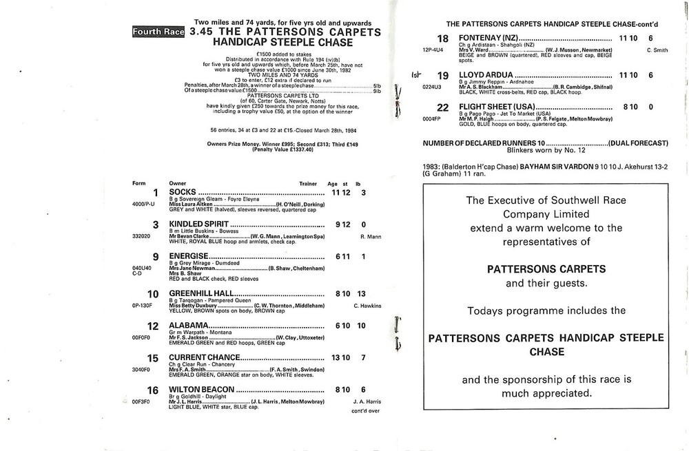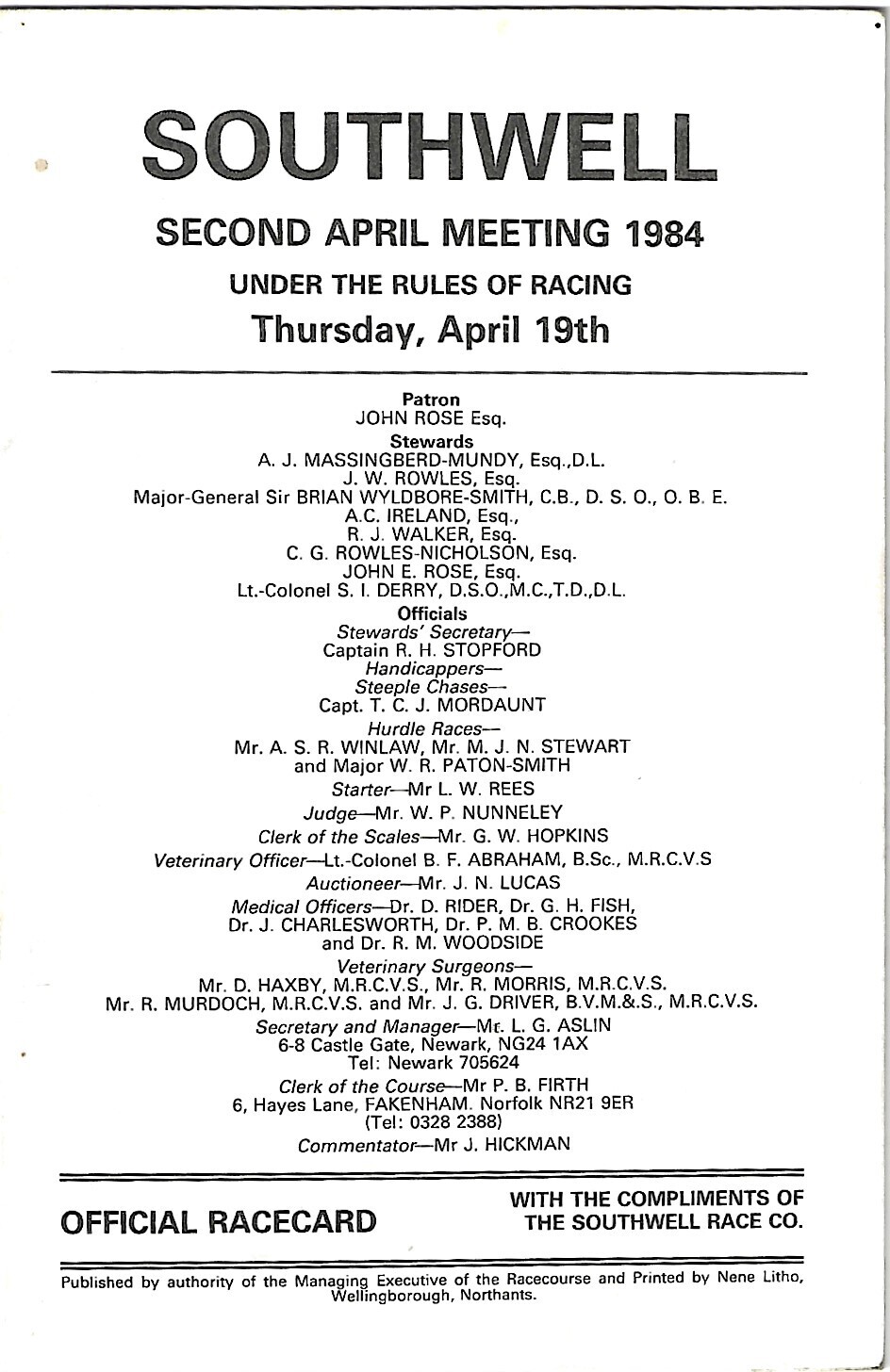1984 Southwell April Meeting (19/04/1984) Horse Racing Racecard