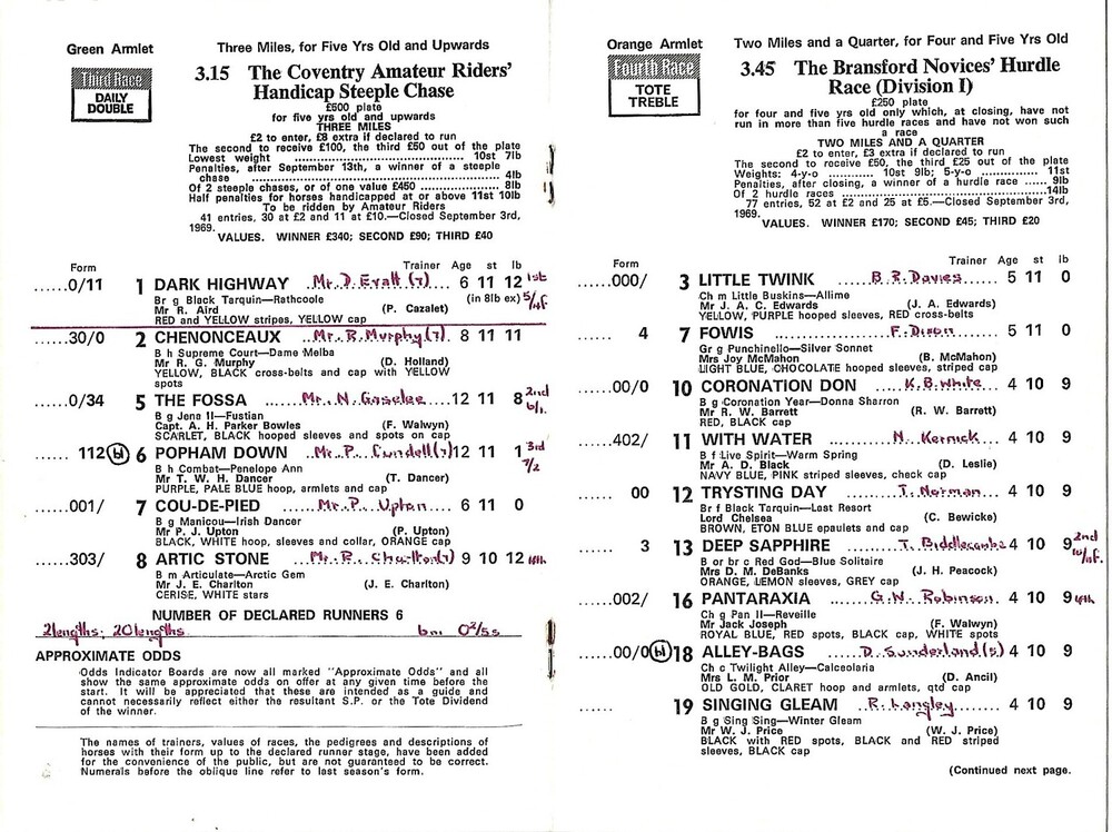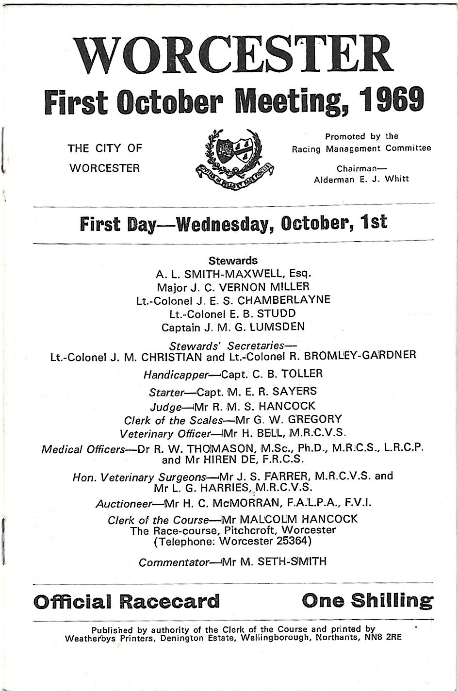 1969 Worcester First October Race Meeting (01/10/1969) Horse Racing Racecard