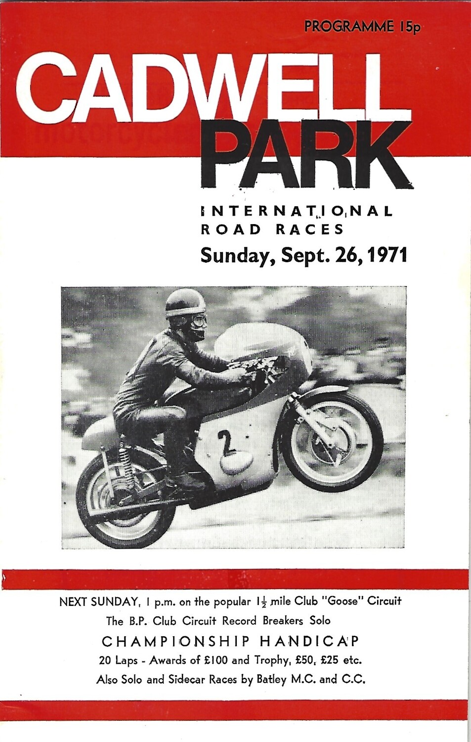 1971 Cadwell Park International Road Race Meeting (26/09/1971) Motor Cycle Racing Programme