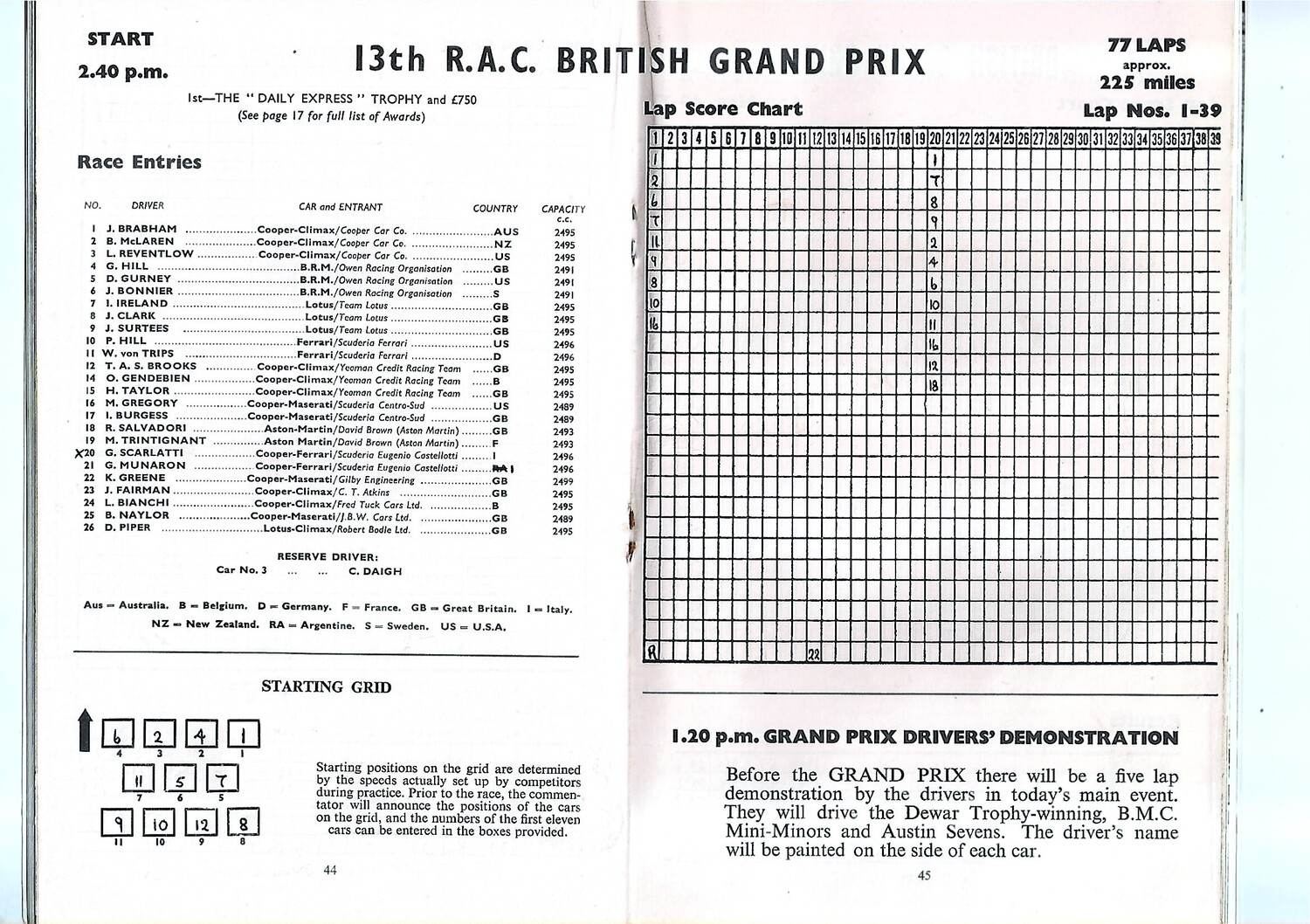 1960 British Grand Prix Motor Racing Programme