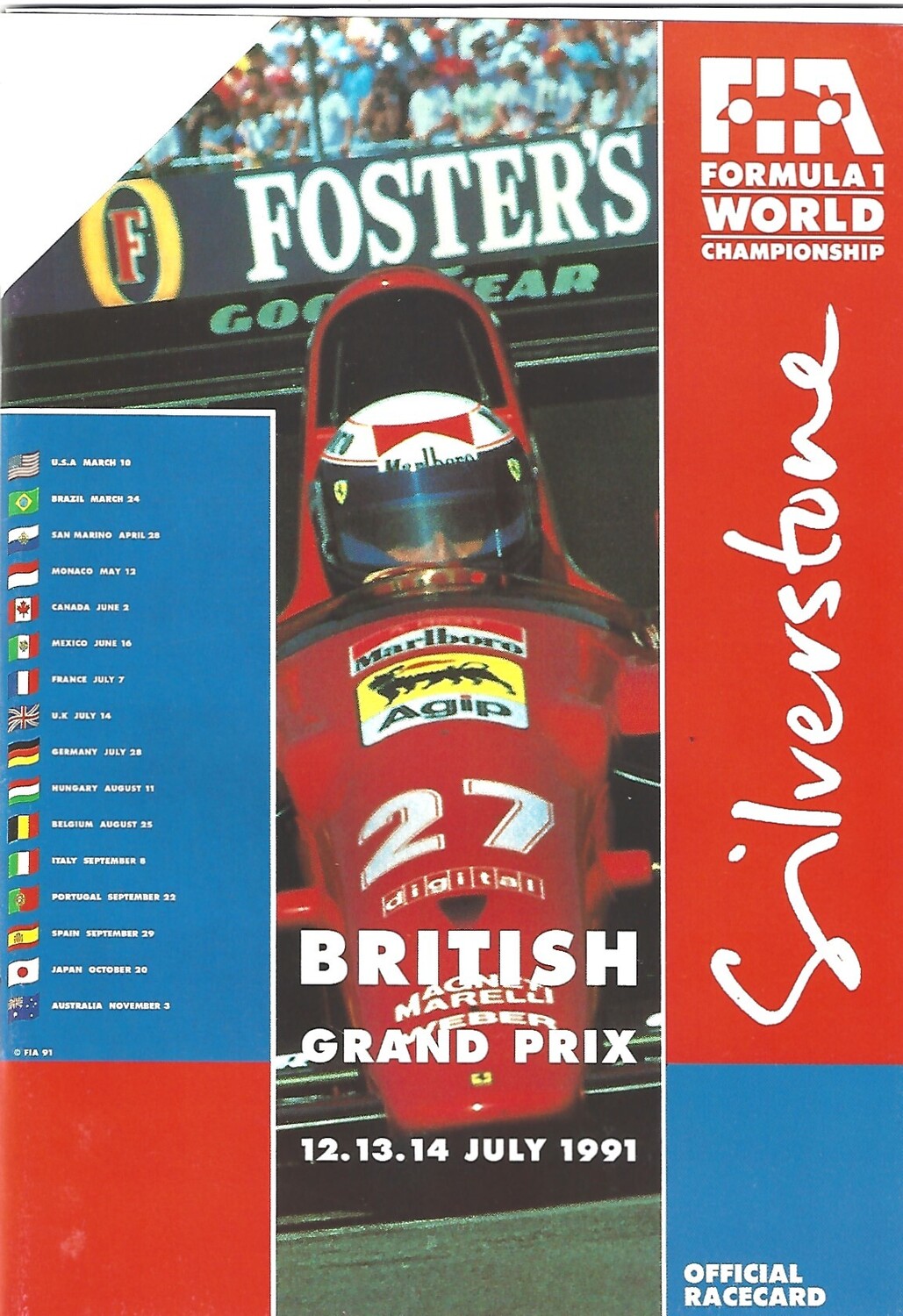 1991 British Grand Prix Motor Racing Programme & Racecard