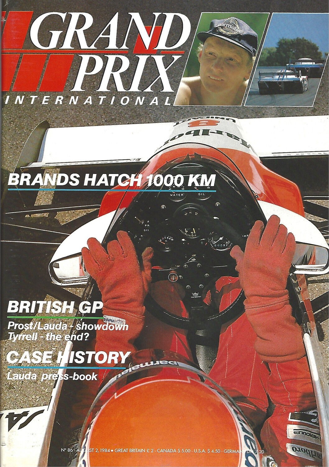 A4 magazine. Slight creasing, discolouration, a couple of small tears on spine. no handwriting. 1984 British GP