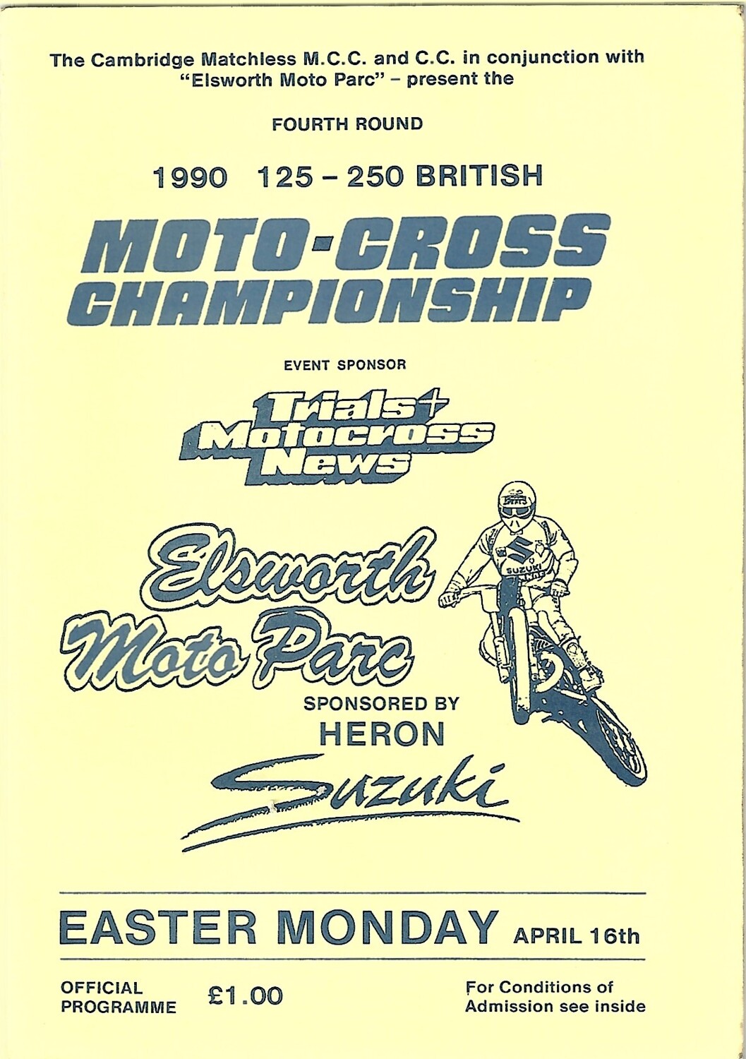 1990 Elsworth Moto Parc 125-250 British Moto-Cross Championship Meeting (16/04/1990) Moto-Cross Programme