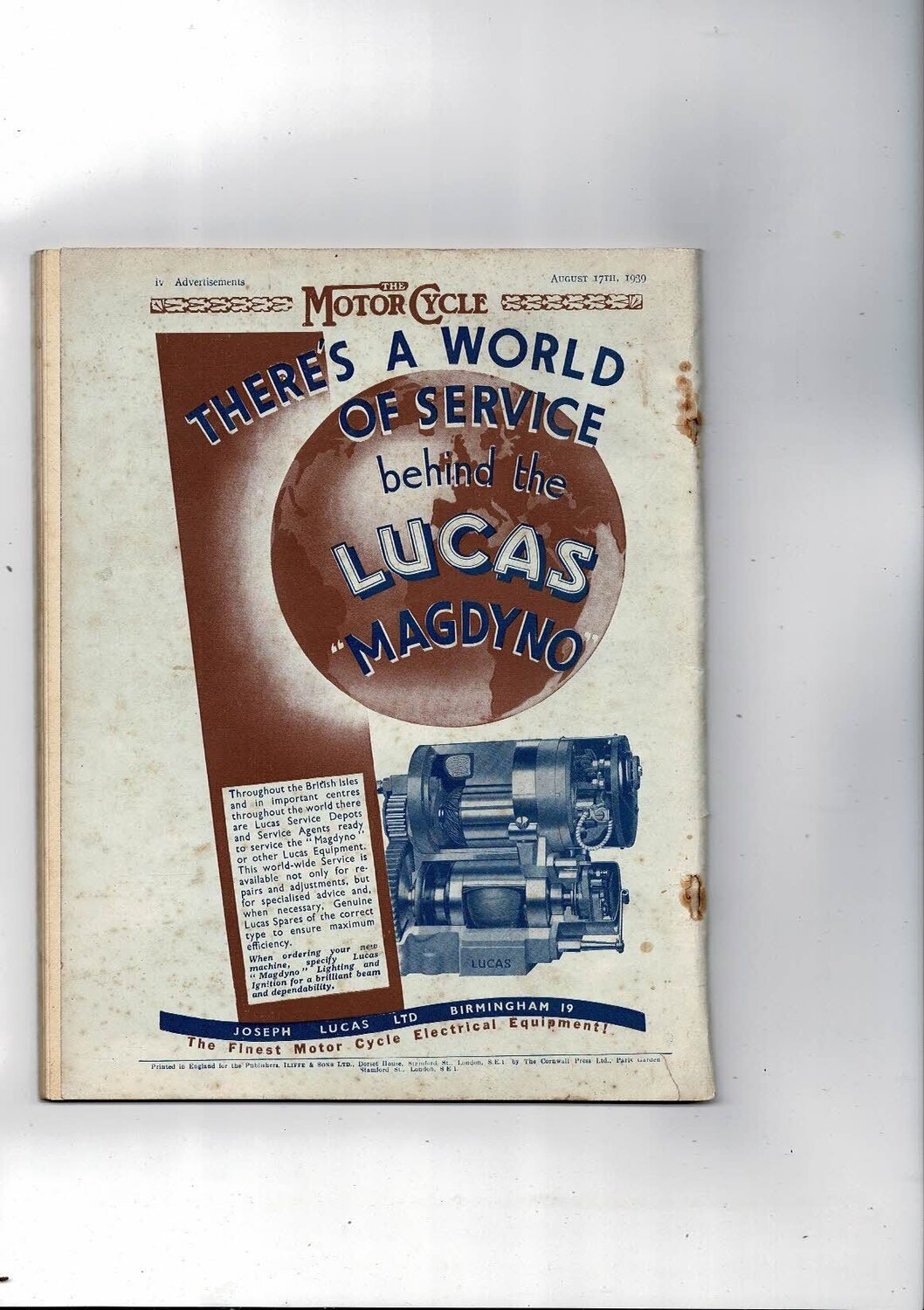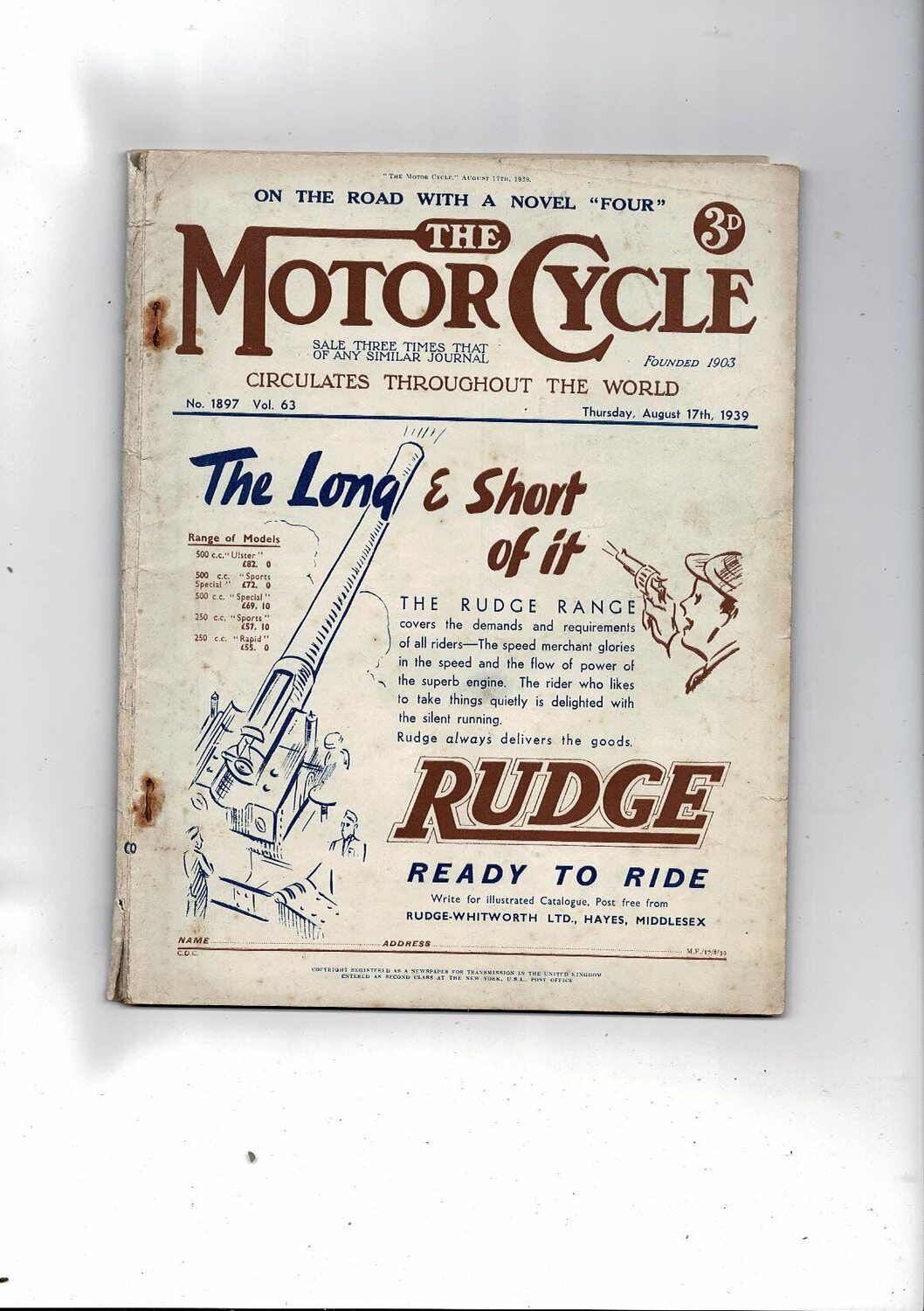 1939 The Motor Cycle Magazine 17th August Vol 63 No 1897