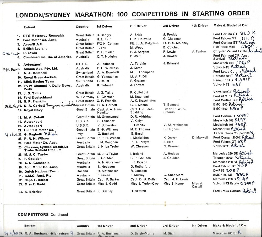 1968 Daily Express London-Sydney Marathon motor racing programme